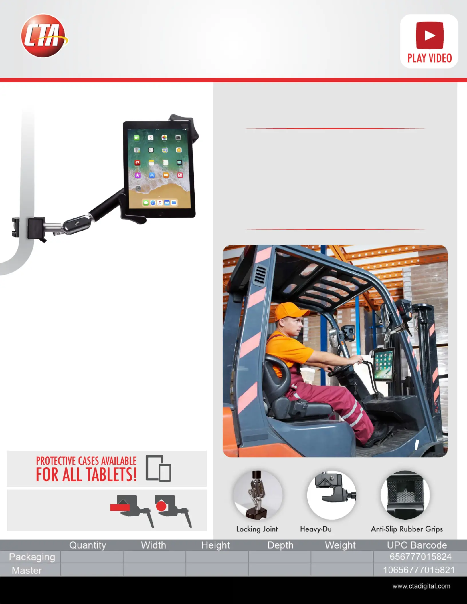 This heavy-duty tablet mount is designed for ease of use and rugged