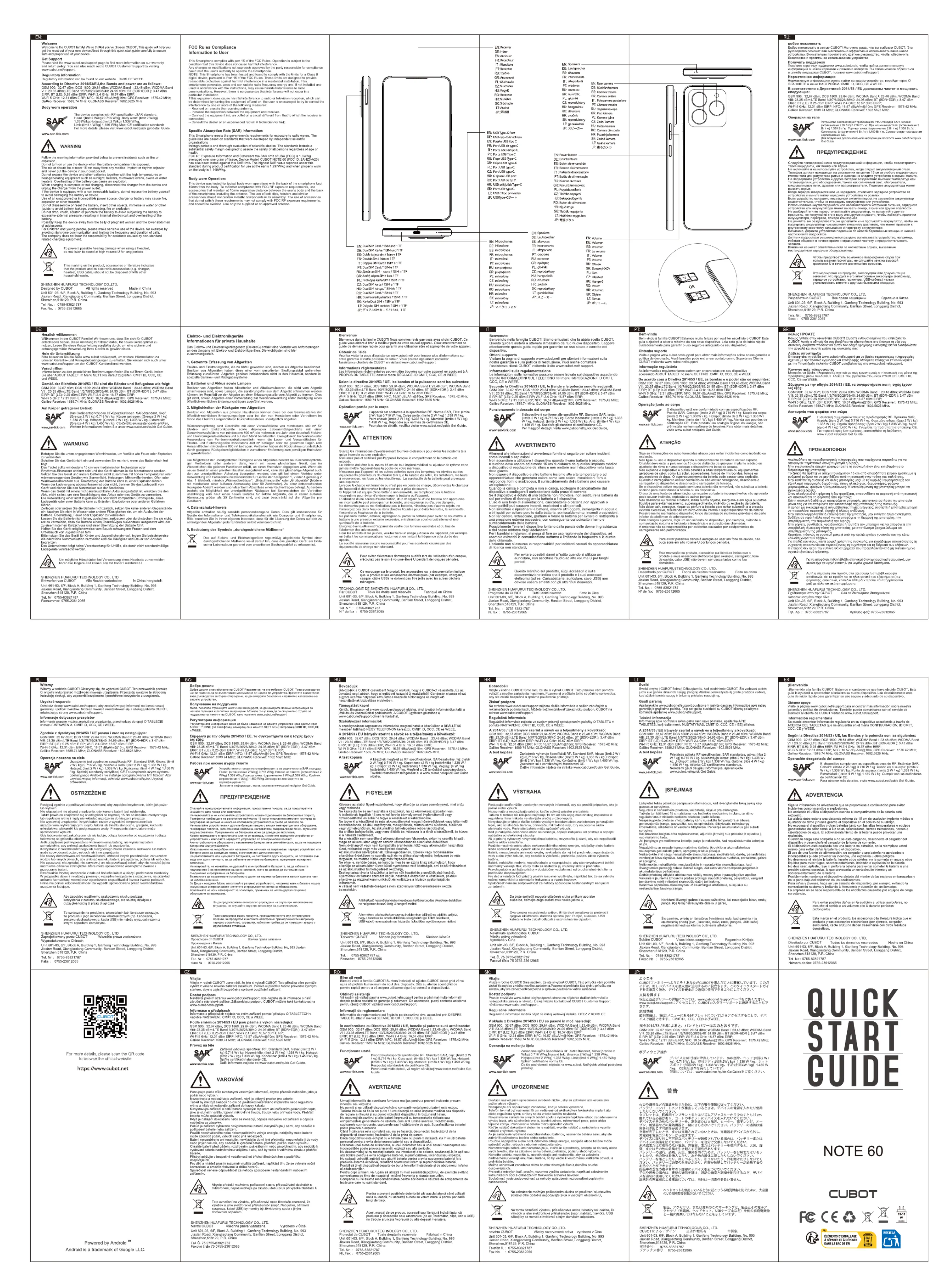 Lies die bedienungsanleitung für Cubot Note 60 (1 Seiten) kostenlos online; sie gehört zur Kategorie Nicht kategorisiert. Dieses Handbuch wurde von 23 Personen als hilfreich bewertet und erhielt im Schnitt 4.7 Sterne aus 12 Bewertungen. Hast du eine Frage zu Cubot Note 60 oder möchtest du andere Nutzer dieses Produkts befragen? Stelle eine Frage