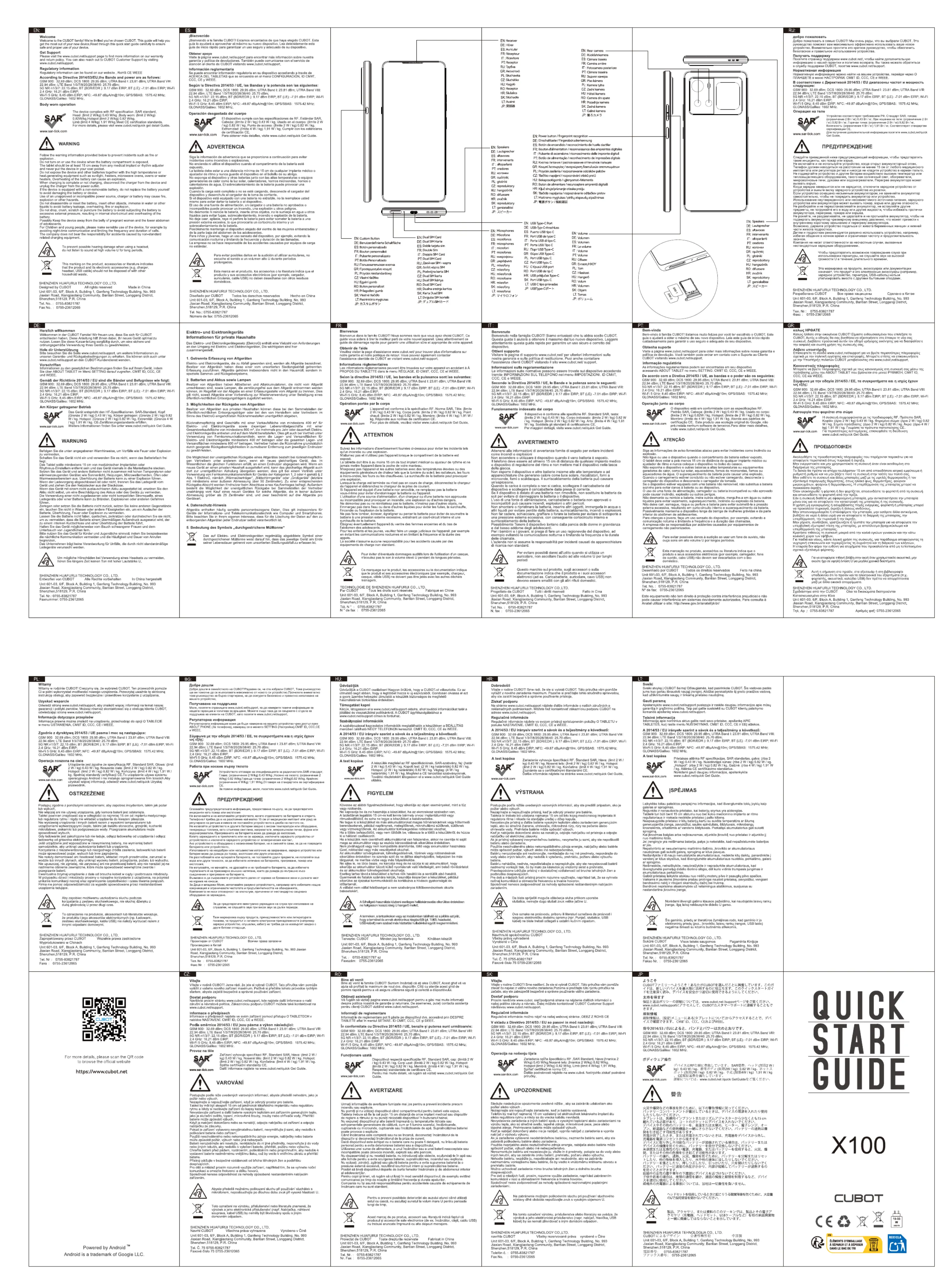 Lies die bedienungsanleitung für Cubot X100 (1 Seiten) kostenlos online; sie gehört zur Kategorie Nicht kategorisiert. Dieses Handbuch wurde von 38 Personen als hilfreich bewertet und erhielt im Schnitt 4.4 Sterne aus 19.5 Bewertungen. Hast du eine Frage zu Cubot X100 oder möchtest du andere Nutzer dieses Produkts befragen? Stelle eine Frage