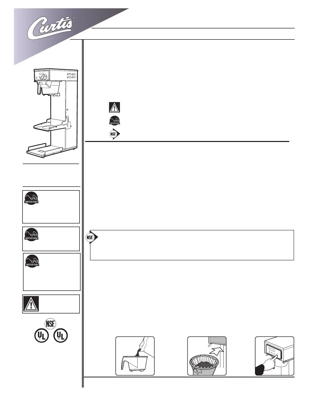 Lies die bedienungsanleitung für Curtis CB (12 Seiten) kostenlos online; sie gehört zur Kategorie Kaffeemaschine. Dieses Handbuch wurde von 2 Personen als hilfreich bewertet und erhielt im Schnitt 4.5 Sterne aus 9 Bewertungen. Hast du eine Frage zu Curtis CB oder möchtest du andere Nutzer dieses Produkts befragen? Stelle eine Frage