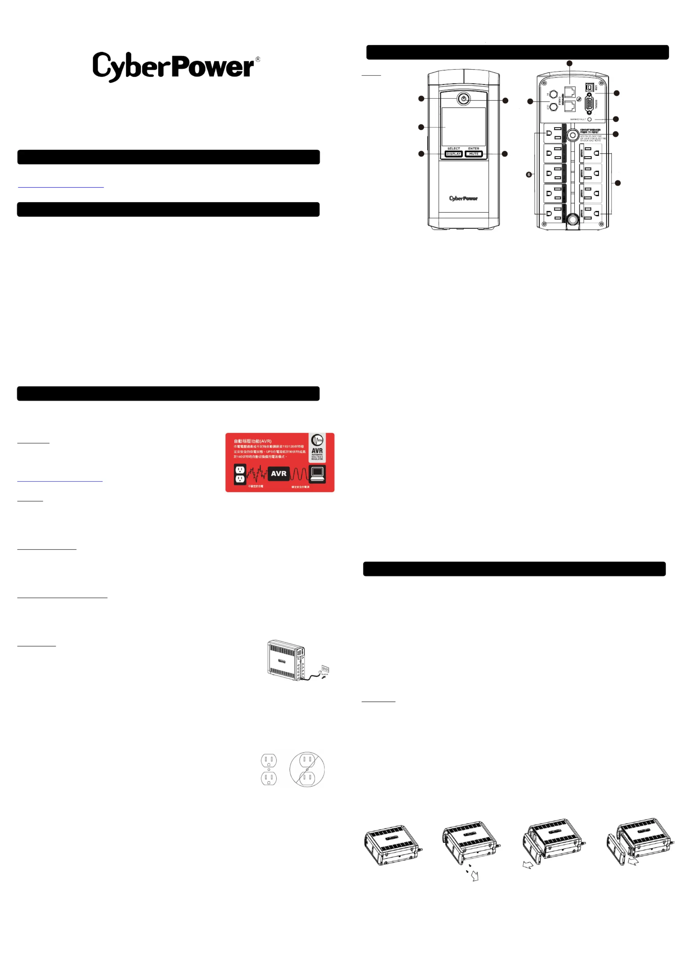 感謝您選擇的產品,為了保障您的權益,請仔細閱讀產品說明書,並即刻進行產品註冊,請至網站CyberPowerCyberPower