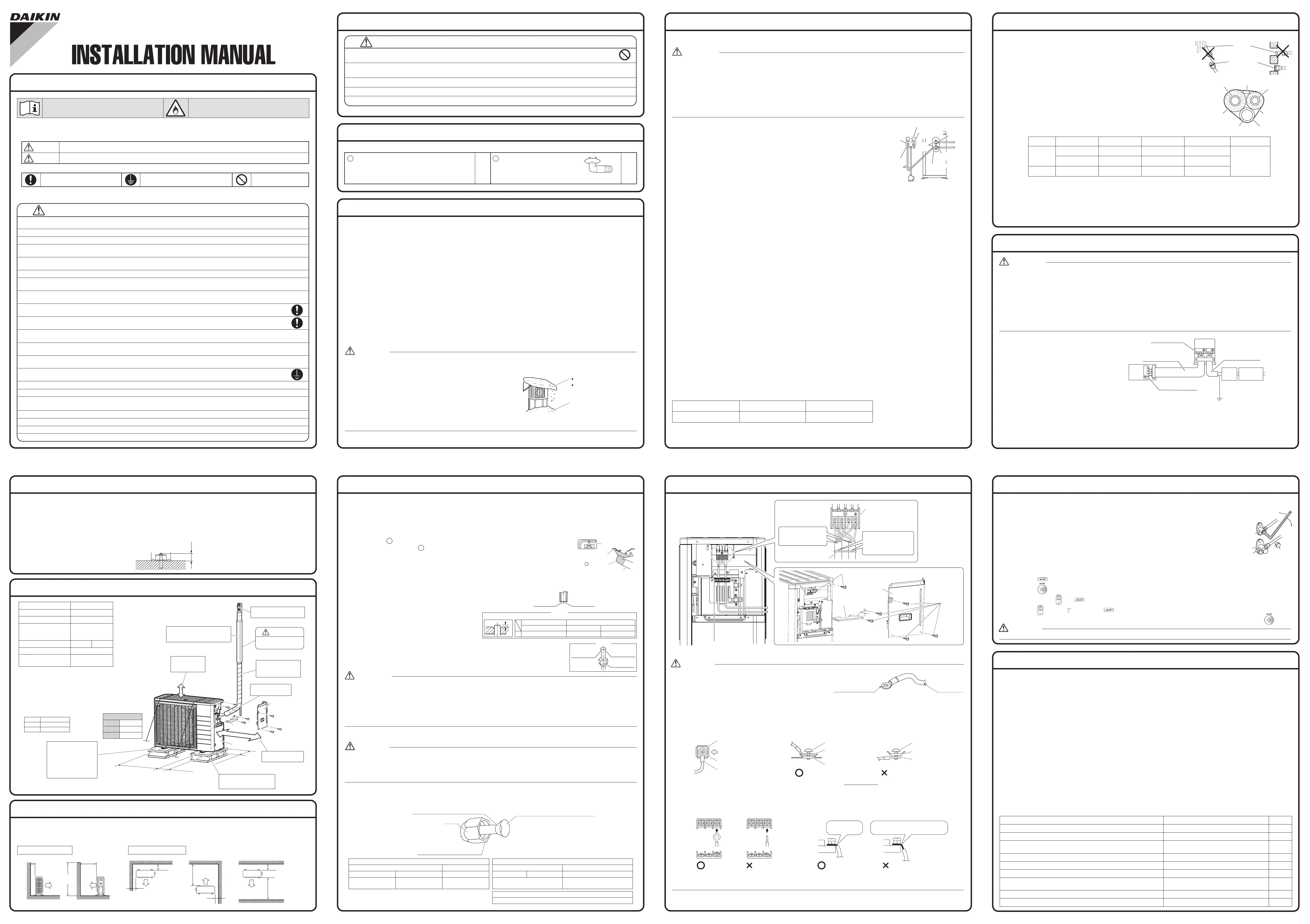 • After completing installation, check for refrigerant gas leakage. Toxic gas may be produced if the refrigerant gas