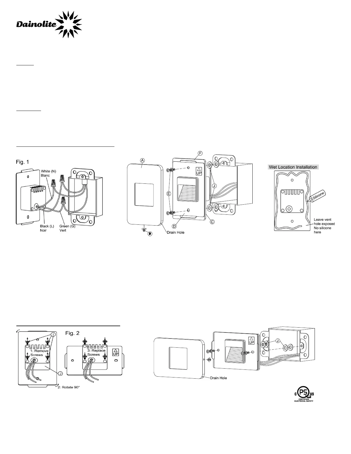 5)Make electrical connection as per instructions. (Fig. 1) Connect black fixture wire to black wire from J-Box, white wire to white neutral wire from J-