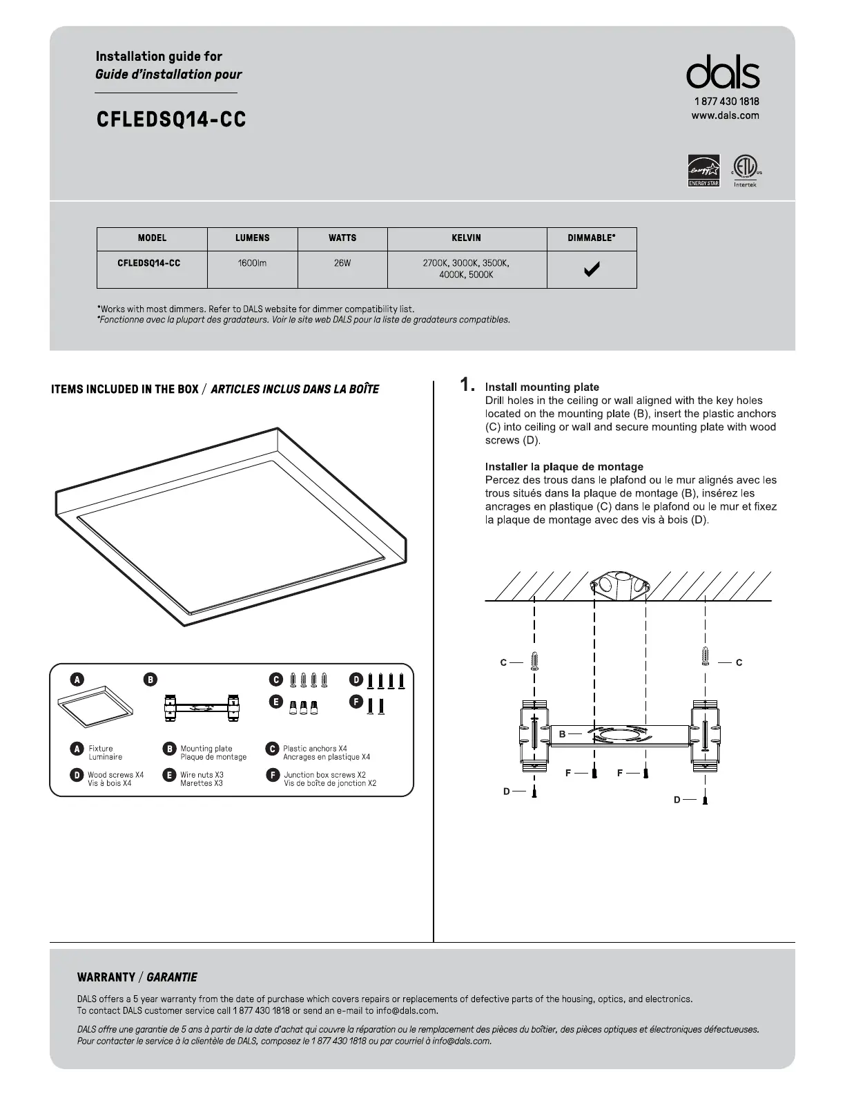 Lies die bedienungsanleitung für Dals CFLEDSQ14-CC (2 Seiten) kostenlos online; sie gehört zur Kategorie Beleuchtung. Dieses Handbuch wurde von 2 Personen als hilfreich bewertet und erhielt im Schnitt 4.7 Sterne aus 9 Bewertungen. Hast du eine Frage zu Dals CFLEDSQ14-CC oder möchtest du andere Nutzer dieses Produkts befragen? Stelle eine Frage