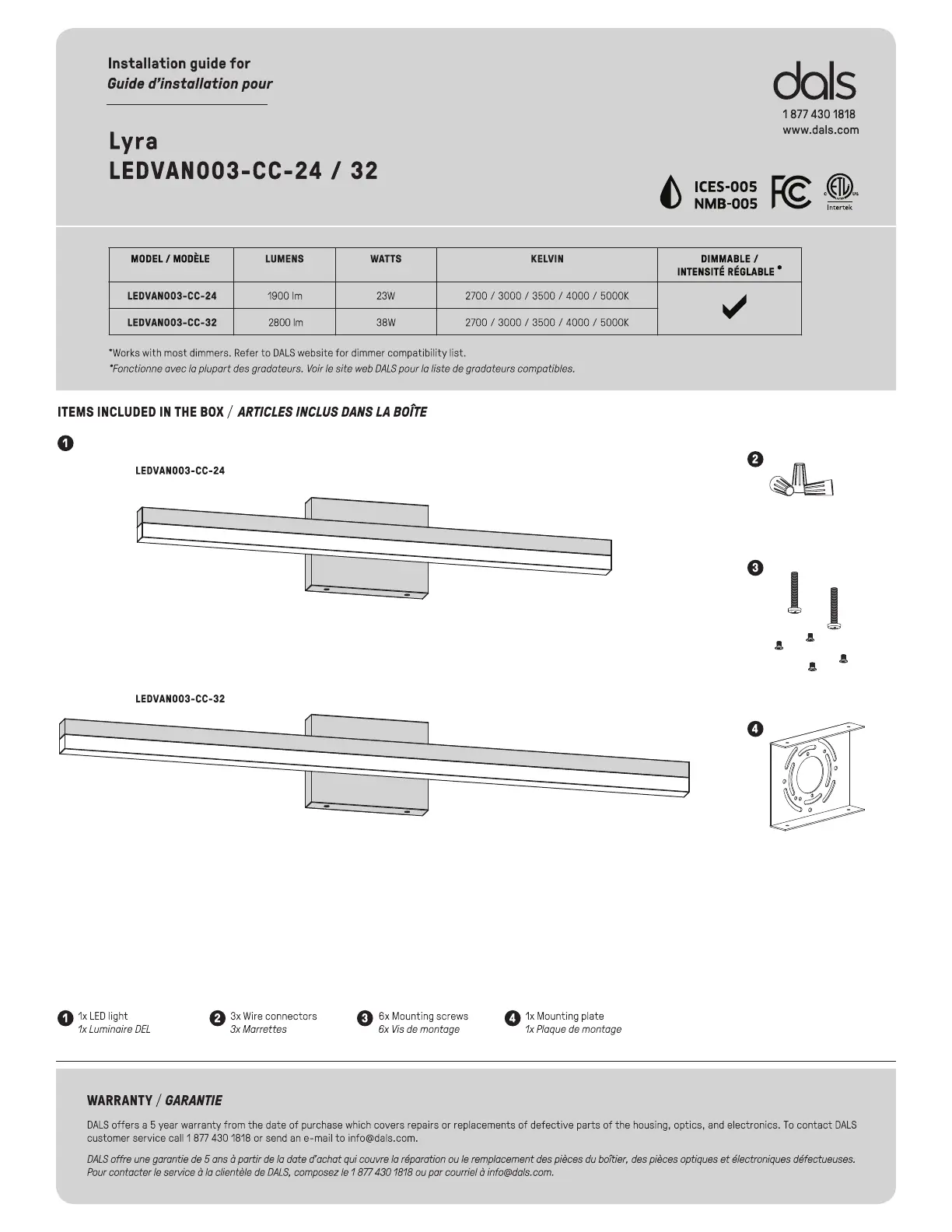 Dals Lyra LEDVAN003-CC-32 Bedienungsanleitung