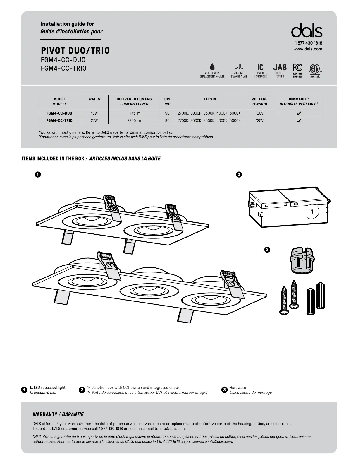 Lies die bedienungsanleitung für Dals Pivot FGM4-CC-DUO (96 Seiten) kostenlos online; sie gehört zur Kategorie Beleuchtung. Dieses Handbuch wurde von 2 Personen als hilfreich bewertet und erhielt im Schnitt 4.8 Sterne aus 6 Bewertungen. Hast du eine Frage zu Dals Pivot FGM4-CC-DUO oder möchtest du andere Nutzer dieses Produkts befragen? Stelle eine Frage