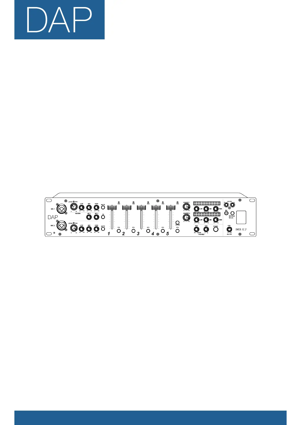 Lies die bedienungsanleitung für DAP Audio IMIX-6.2 (24 Seiten) kostenlos online; sie gehört zur Kategorie Mischpult. Dieses Handbuch wurde von 34 Personen als hilfreich bewertet und erhielt im Schnitt 4.6 Sterne aus 17.5 Bewertungen. Hast du eine Frage zu DAP Audio IMIX-6.2 oder möchtest du andere Nutzer dieses Produkts befragen? Stelle eine Frage
