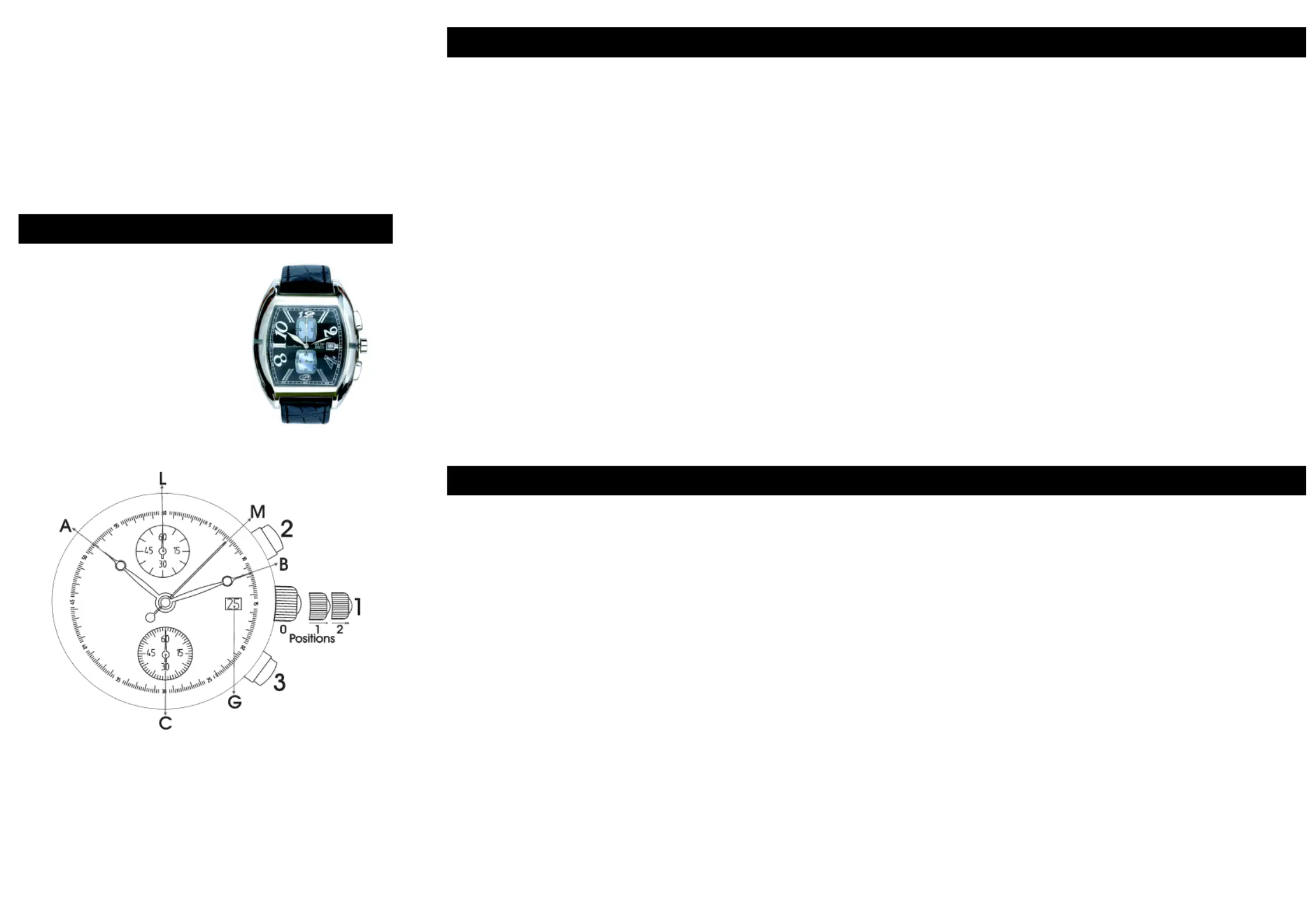 Pull out the crown (1) to position 2. Both hands (M) and (L) will turn