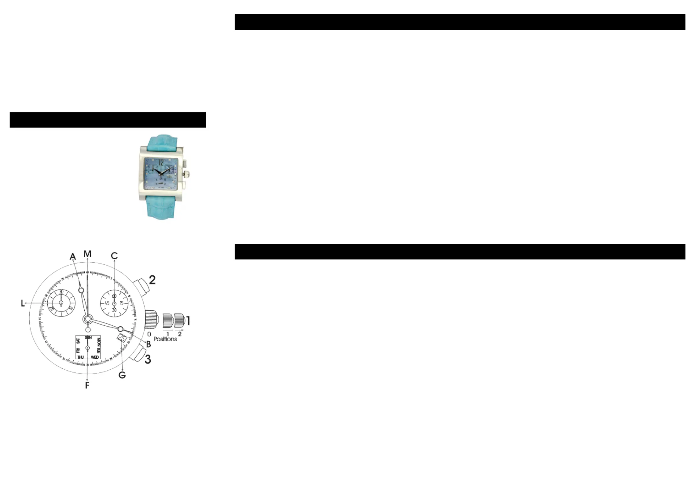 will stop. When stopping the chronograph the hands (L) and (M) will show the correct time.