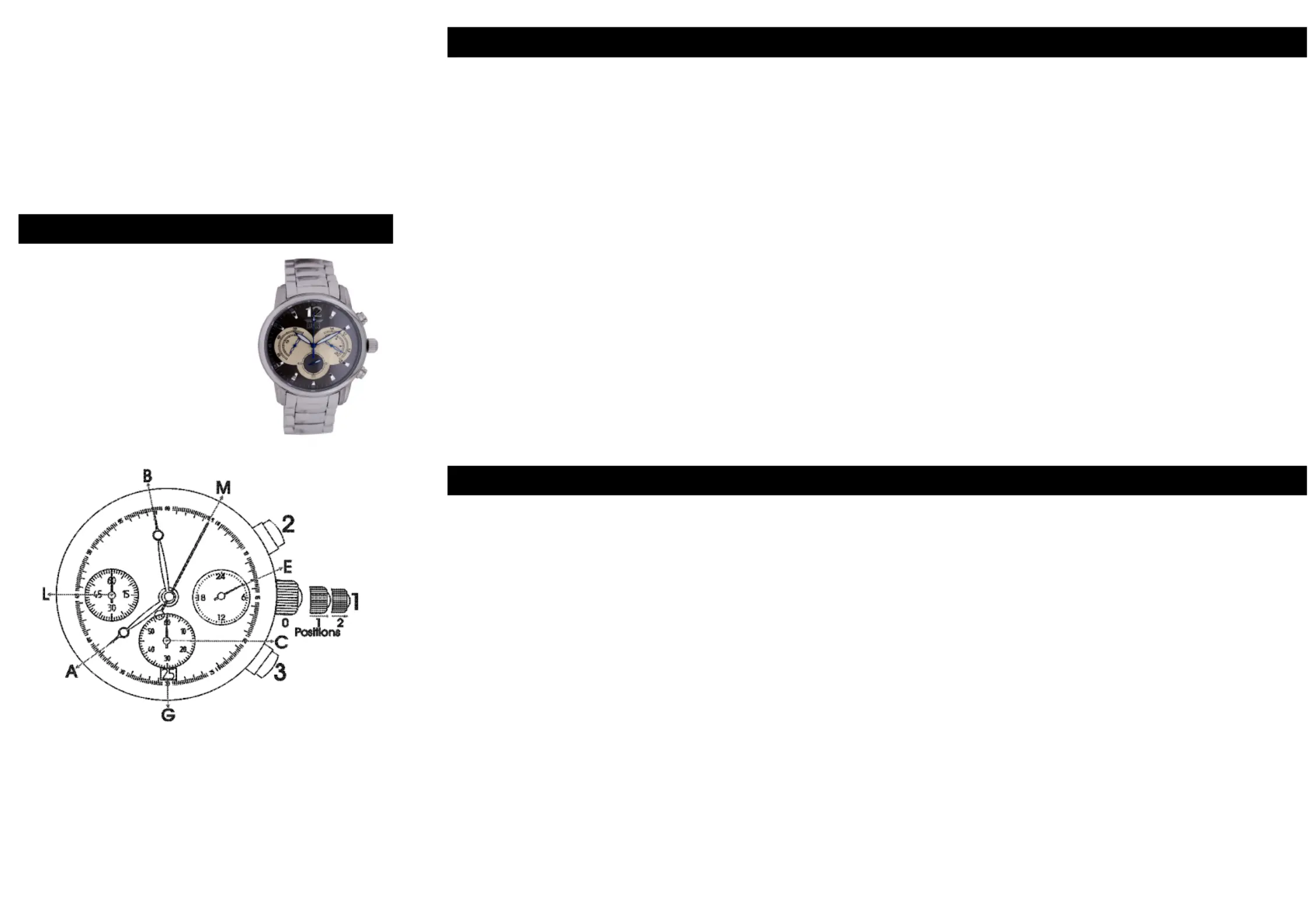 Pull out the crown (1) to position 2. Both hands (M) and (L) will turn