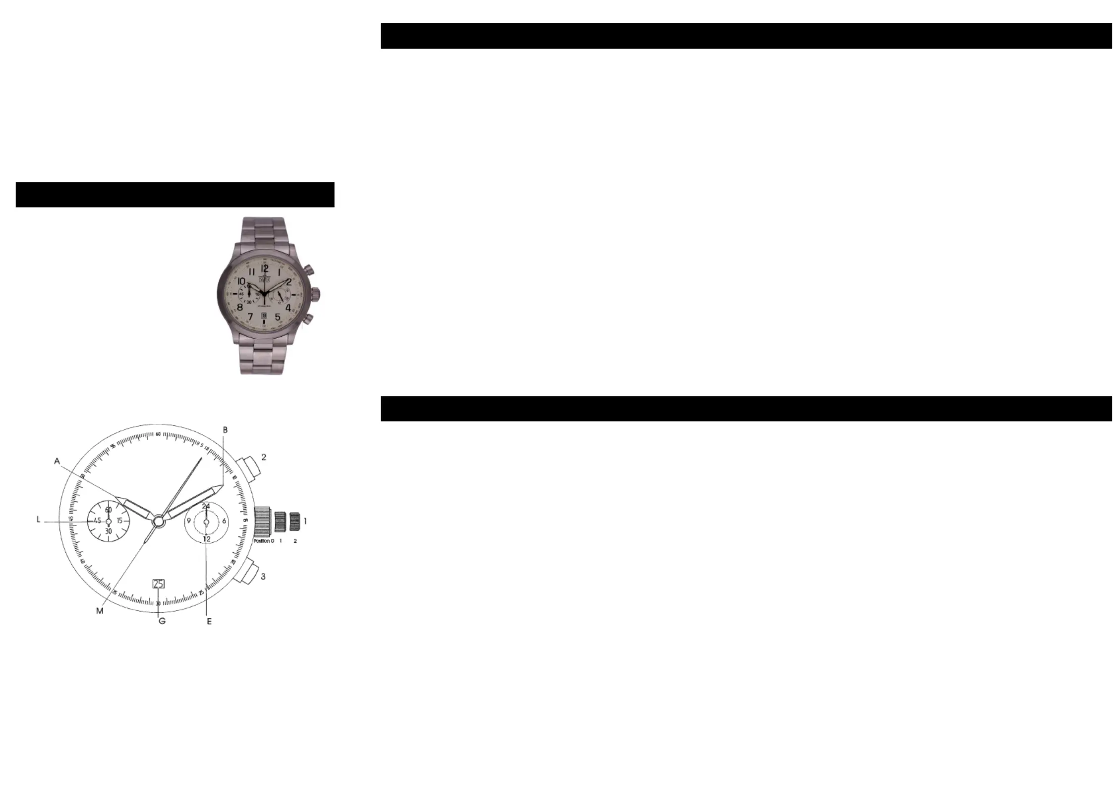Sekundenzeiger (M) auf den Null Position steht. Zum Schluß drucken Sie die Krone (1)