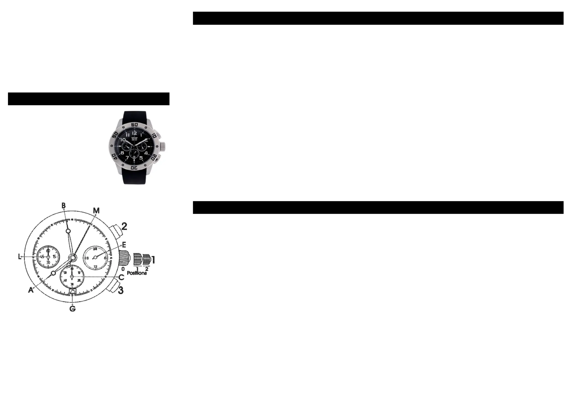 Pull out the crown (1) to position 2. Both hands (M) and (L) will turn