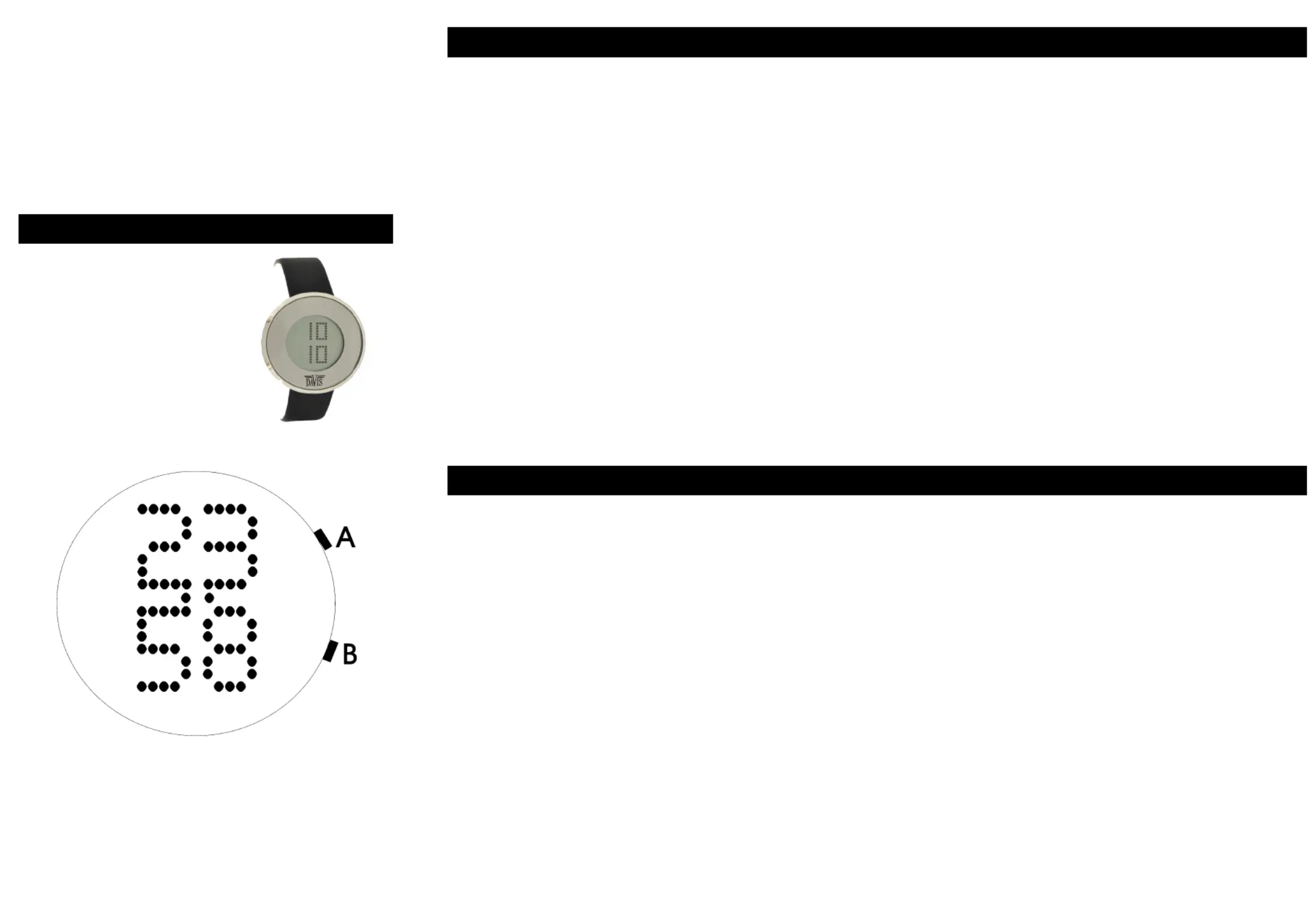 button (B). The day digit will flash. Push on button (A) to change the day digit. Push again on button (B) to return
