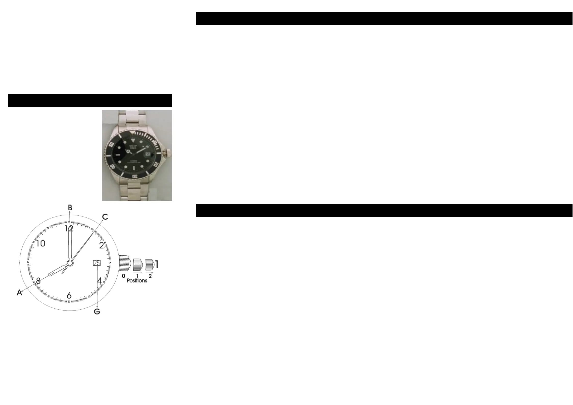 minute (B) hands shows the correct time. Push the crown (1) back to position 0.