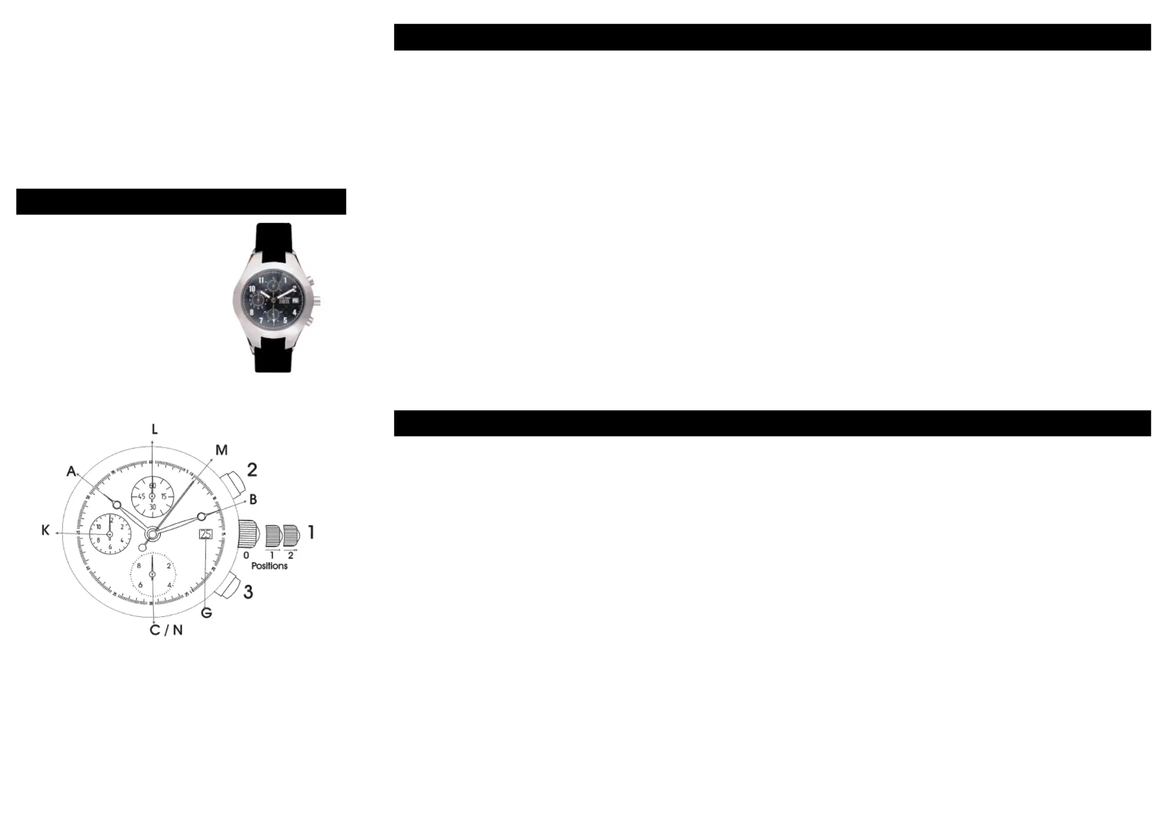 Um der Chronograph zu starten betätigen Sie Taste (2). Zeiger (M) und (N) laufen jetzt rund.