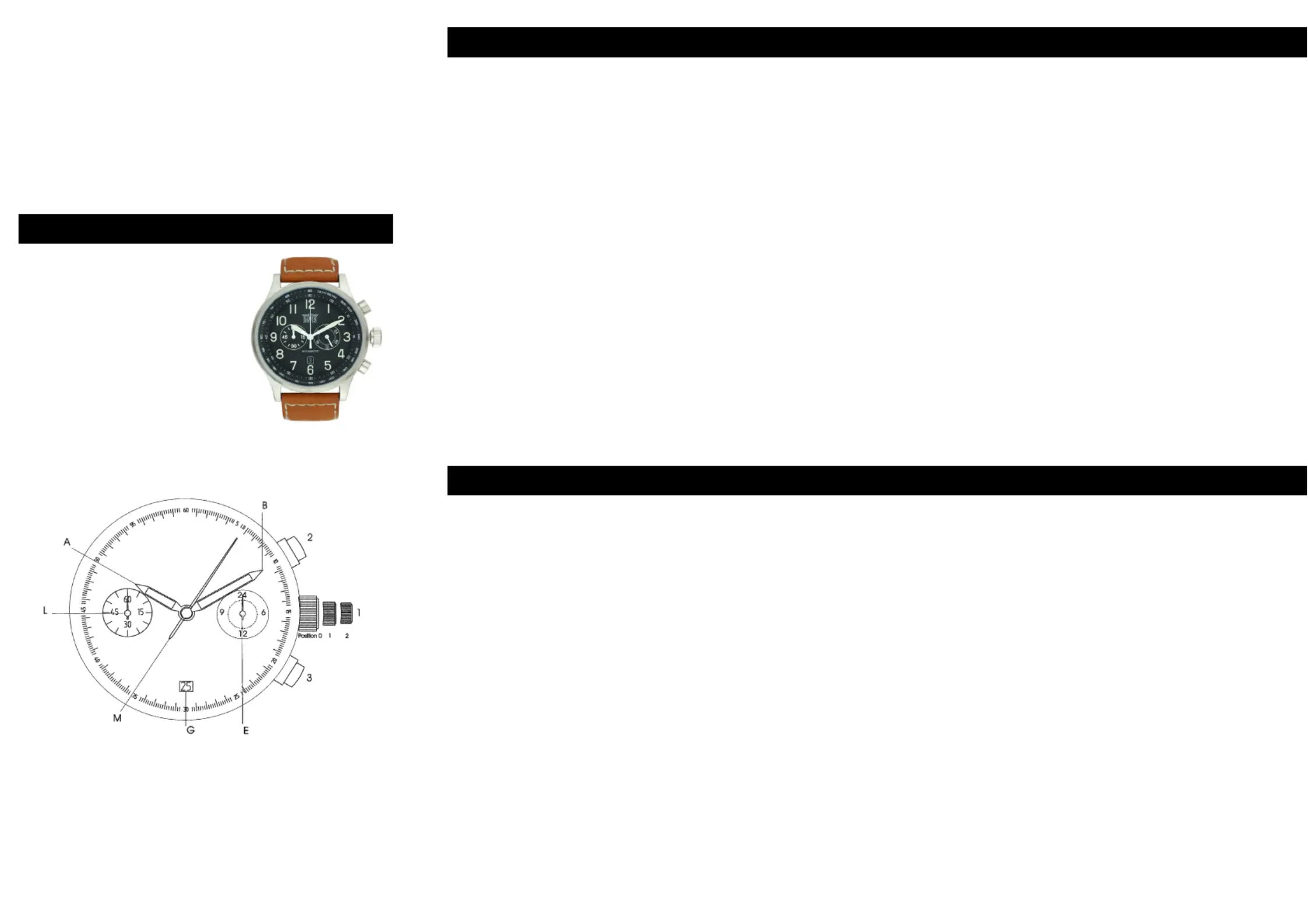 Sekundenzeiger (M) auf den Null Position steht. Zum Schluß drucken Sie die Krone (1)