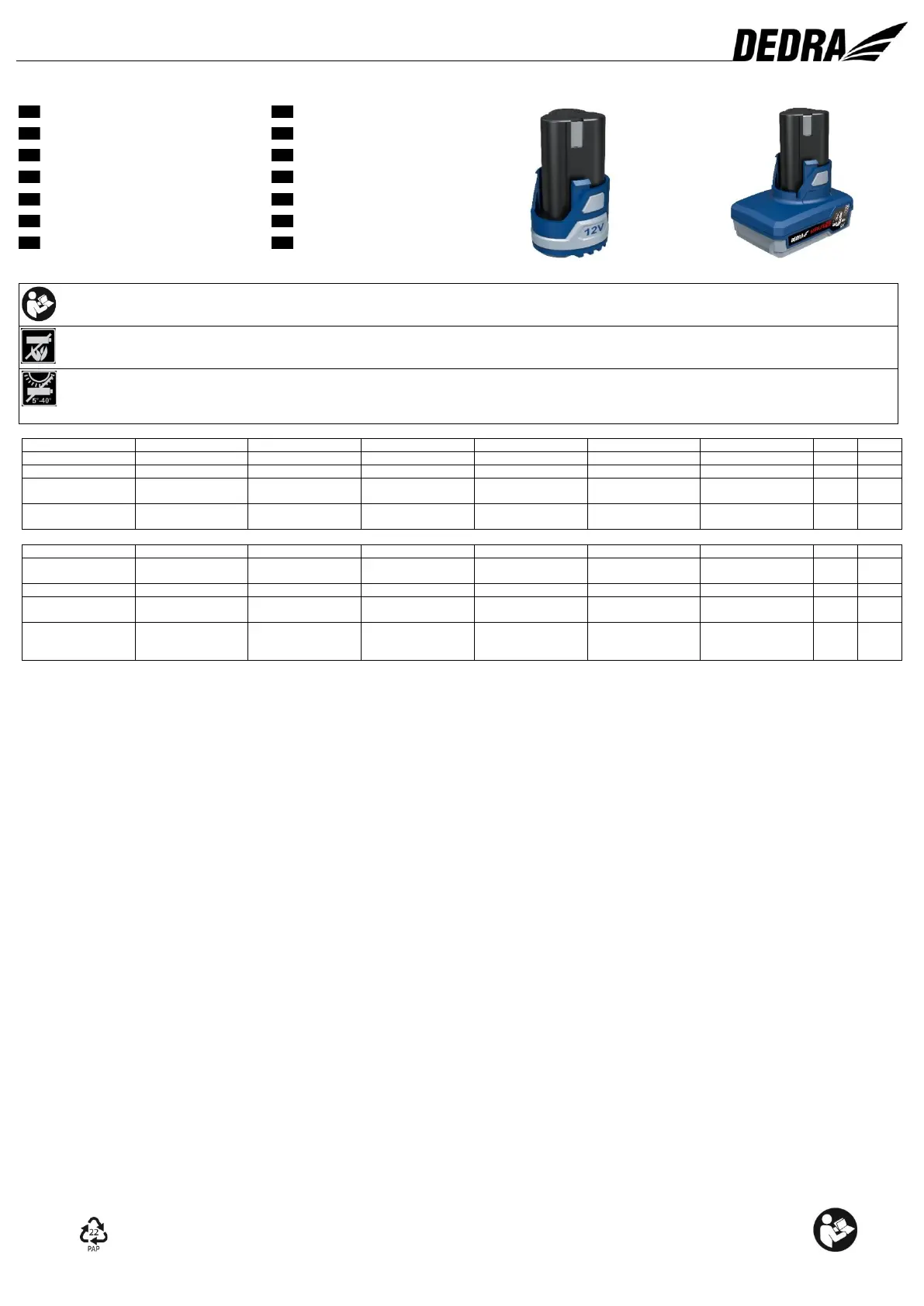 DEDRA Akumulatory można ładować tylko dedykowaną ładowarką