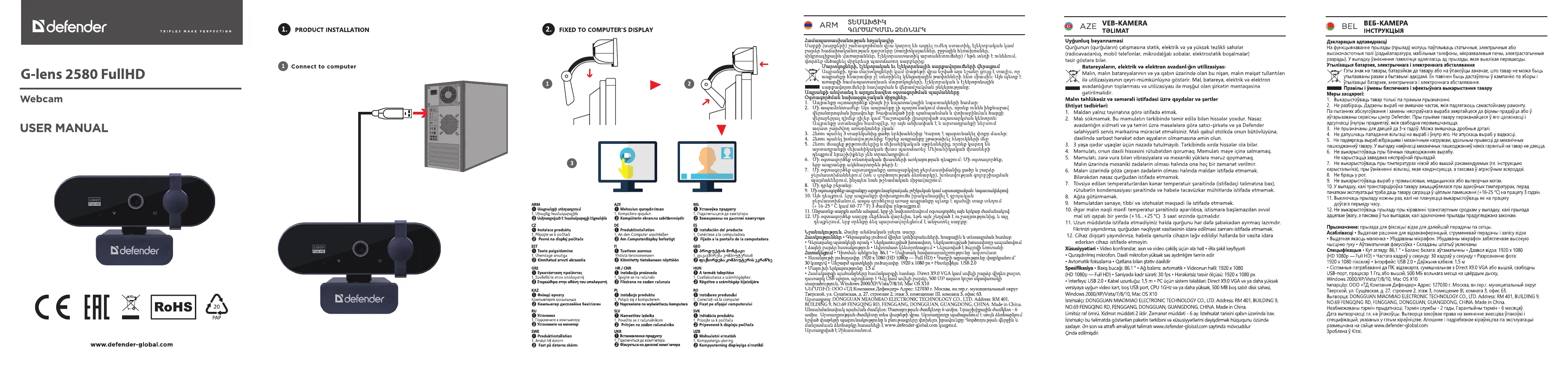 Lies die bedienungsanleitung für Defender G-lens 2580 FullHD (4 Seiten) kostenlos online; sie gehört zur Kategorie Webcam. Dieses Handbuch wurde von 21 Personen als hilfreich bewertet und erhielt im Schnitt 4.3 Sterne aus 11 Bewertungen. Hast du eine Frage zu Defender G-lens 2580 FullHD oder möchtest du andere Nutzer dieses Produkts befragen? Stelle eine Frage