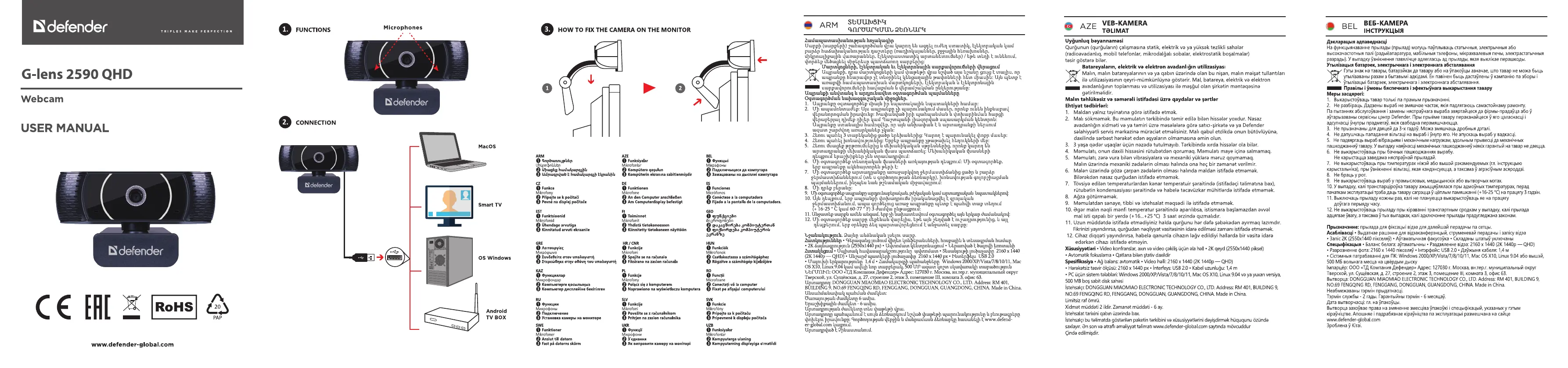 Lies die bedienungsanleitung für Defender G-lens 2590 QHD (4 Seiten) kostenlos online; sie gehört zur Kategorie Webcam. Dieses Handbuch wurde von 15 Personen als hilfreich bewertet und erhielt im Schnitt 4.7 Sterne aus 8 Bewertungen. Hast du eine Frage zu Defender G-lens 2590 QHD oder möchtest du andere Nutzer dieses Produkts befragen? Stelle eine Frage