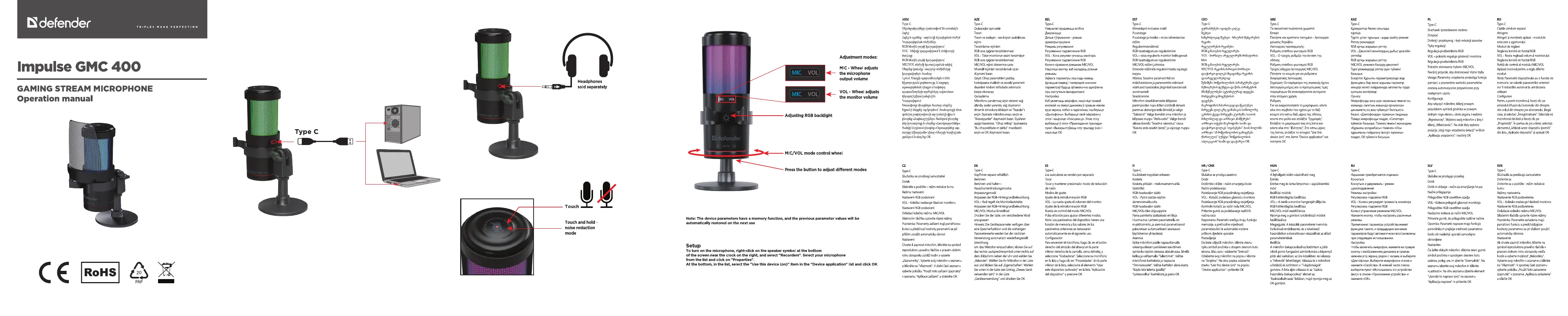 Lies die bedienungsanleitung für Defender Impulse GMC 400 (4 Seiten) kostenlos online; sie gehört zur Kategorie Mikrofon. Dieses Handbuch wurde von 27 Personen als hilfreich bewertet und erhielt im Schnitt 4.3 Sterne aus 14 Bewertungen. Hast du eine Frage zu Defender Impulse GMC 400 oder möchtest du andere Nutzer dieses Produkts befragen? Stelle eine Frage