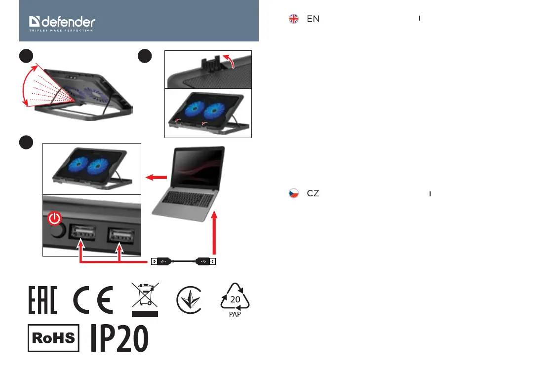 Vlastnosti • Vestavěné ventilátory • Kovové pouzdro - Spolehlivý a odolný stojan • Poskytuje pohodlí při práci s notebookem
