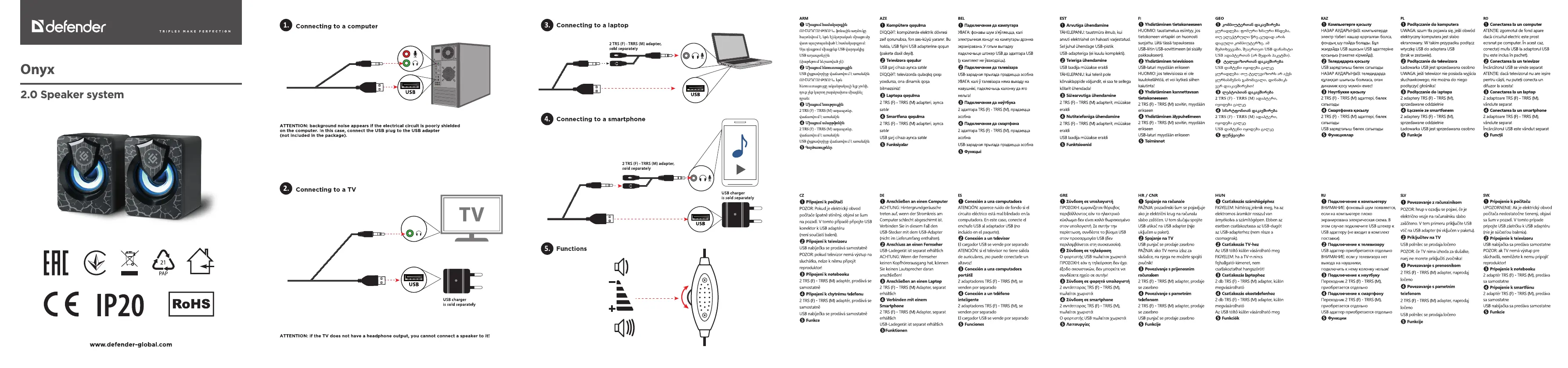 Lies die bedienungsanleitung für Defender Onyx (4 Seiten) kostenlos online; sie gehört zur Kategorie Lautsprecher. Dieses Handbuch wurde von 32 Personen als hilfreich bewertet und erhielt im Schnitt 4.3 Sterne aus 16.5 Bewertungen. Hast du eine Frage zu Defender Onyx oder möchtest du andere Nutzer dieses Produkts befragen? Stelle eine Frage