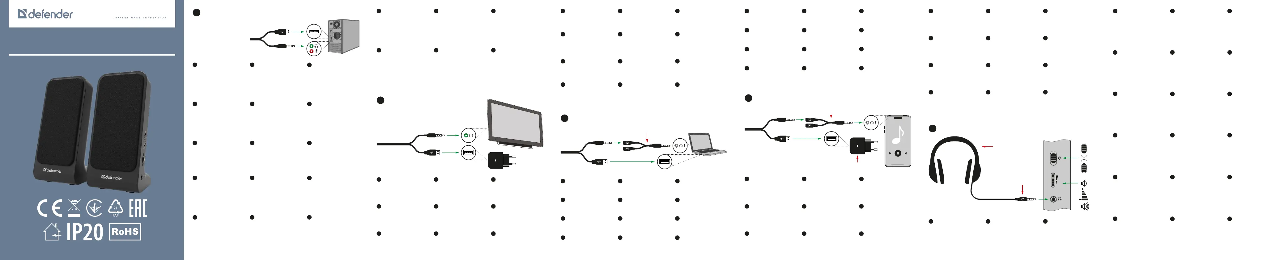 Lies die bedienungsanleitung für Defender SPK-225 (4 Seiten) kostenlos online; sie gehört zur Kategorie Lautsprecher. Dieses Handbuch wurde von 4 Personen als hilfreich bewertet und erhielt im Schnitt 4.8 Sterne aus 2.5 Bewertungen. Hast du eine Frage zu Defender SPK-225 oder möchtest du andere Nutzer dieses Produkts befragen? Stelle eine Frage