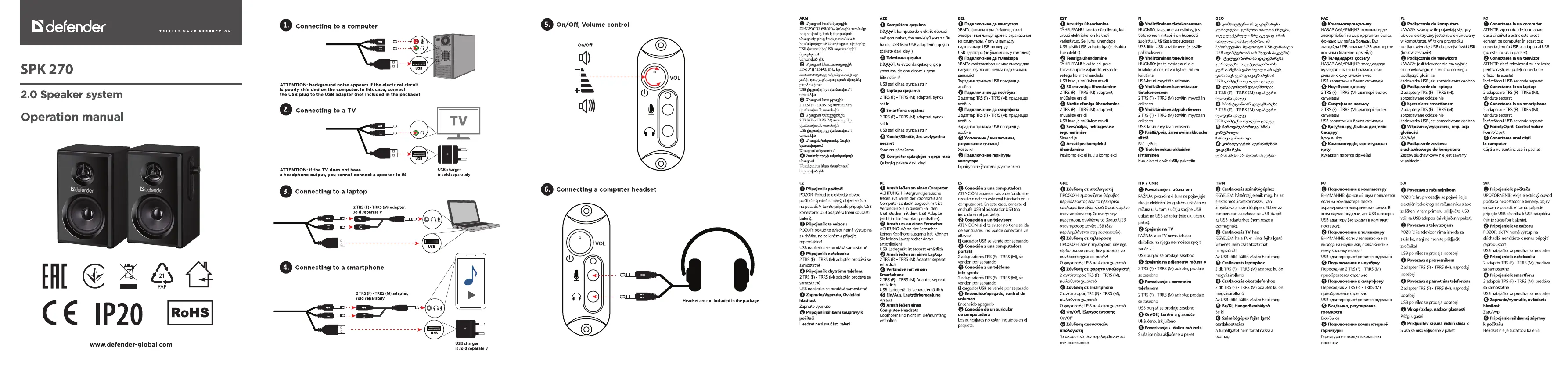 Lies die bedienungsanleitung für Defender SPK 270 (4 Seiten) kostenlos online; sie gehört zur Kategorie Lautsprecher. Dieses Handbuch wurde von 9 Personen als hilfreich bewertet und erhielt im Schnitt 4.7 Sterne aus 5 Bewertungen. Hast du eine Frage zu Defender SPK 270 oder möchtest du andere Nutzer dieses Produkts befragen? Stelle eine Frage