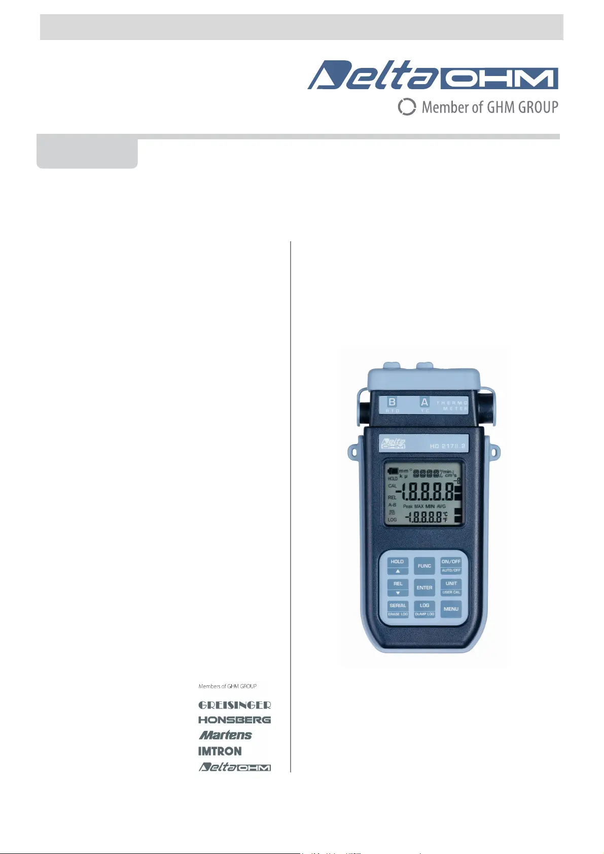 Lies die bedienungsanleitung für Delta Ohm HD2178.2 (38 Seiten) kostenlos online; sie gehört zur Kategorie Thermometer. Dieses Handbuch wurde von 49 Personen als hilfreich bewertet und erhielt im Schnitt 4.2 Sterne aus 6 Bewertungen. Hast du eine Frage zu Delta Ohm HD2178.2 oder möchtest du andere Nutzer dieses Produkts befragen? Stelle eine Frage