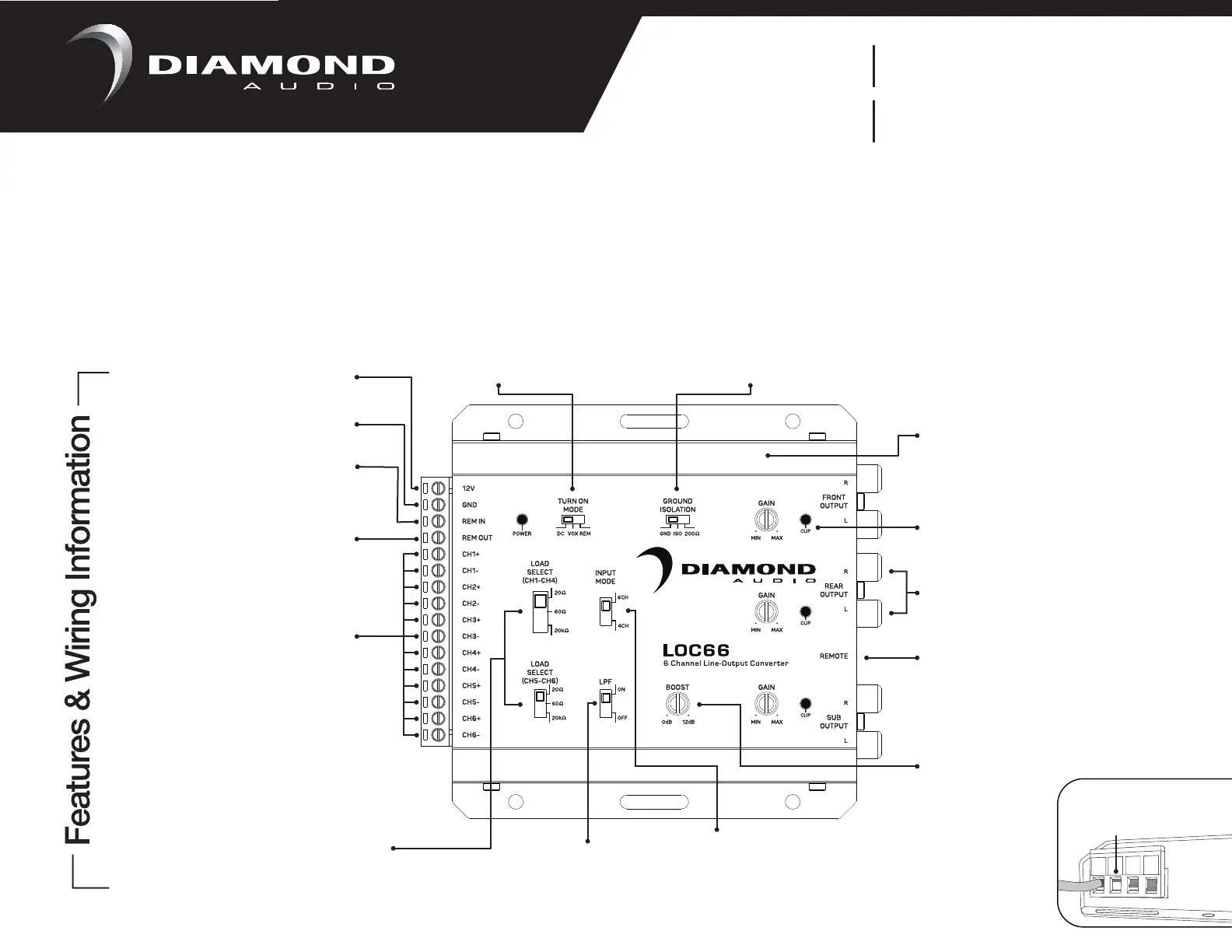 Clipping LEDs, Selectable Ground Modes, and OEM Load features, the LOC66 guarantees a clear and noise less signal for your audio