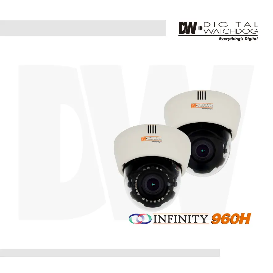 Lies die bedienungsanleitung für Digital Watchdog Infinity 960H DWC-D4567WTIR (40 Seiten) kostenlos online; sie gehört zur Kategorie Überwachungskamera. Dieses Handbuch wurde von 42 Personen als hilfreich bewertet und erhielt im Schnitt 5.0 Sterne aus 21.5 Bewertungen. Hast du eine Frage zu Digital Watchdog Infinity 960H DWC-D4567WTIR oder möchtest du andere Nutzer dieses Produkts befragen? Stelle eine Frage