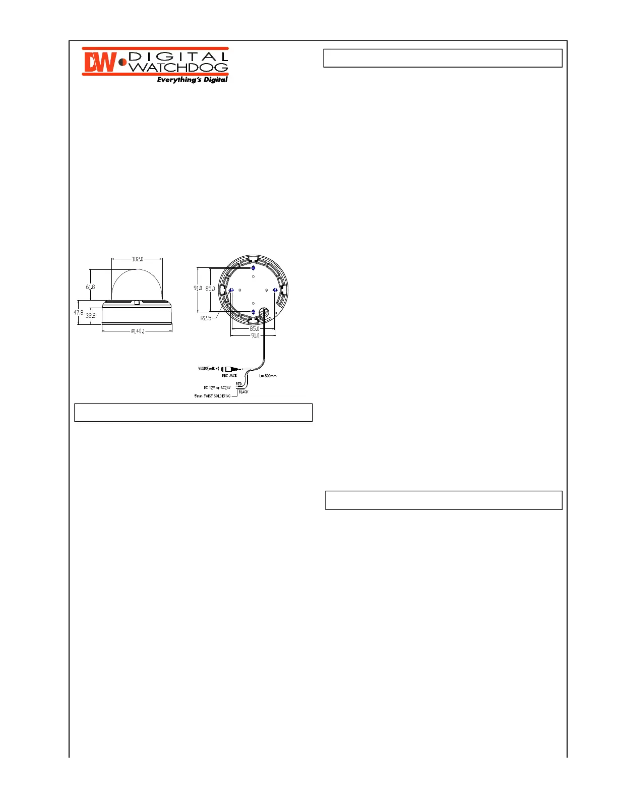 Lies die bedienungsanleitung für Digital Watchdog Star-Light DWC-V3373D (5 Seiten) kostenlos online; sie gehört zur Kategorie Überwachungskamera. Dieses Handbuch wurde von 49 Personen als hilfreich bewertet und erhielt im Schnitt 4.4 Sterne aus 25 Bewertungen. Hast du eine Frage zu Digital Watchdog Star-Light DWC-V3373D oder möchtest du andere Nutzer dieses Produkts befragen? Stelle eine Frage