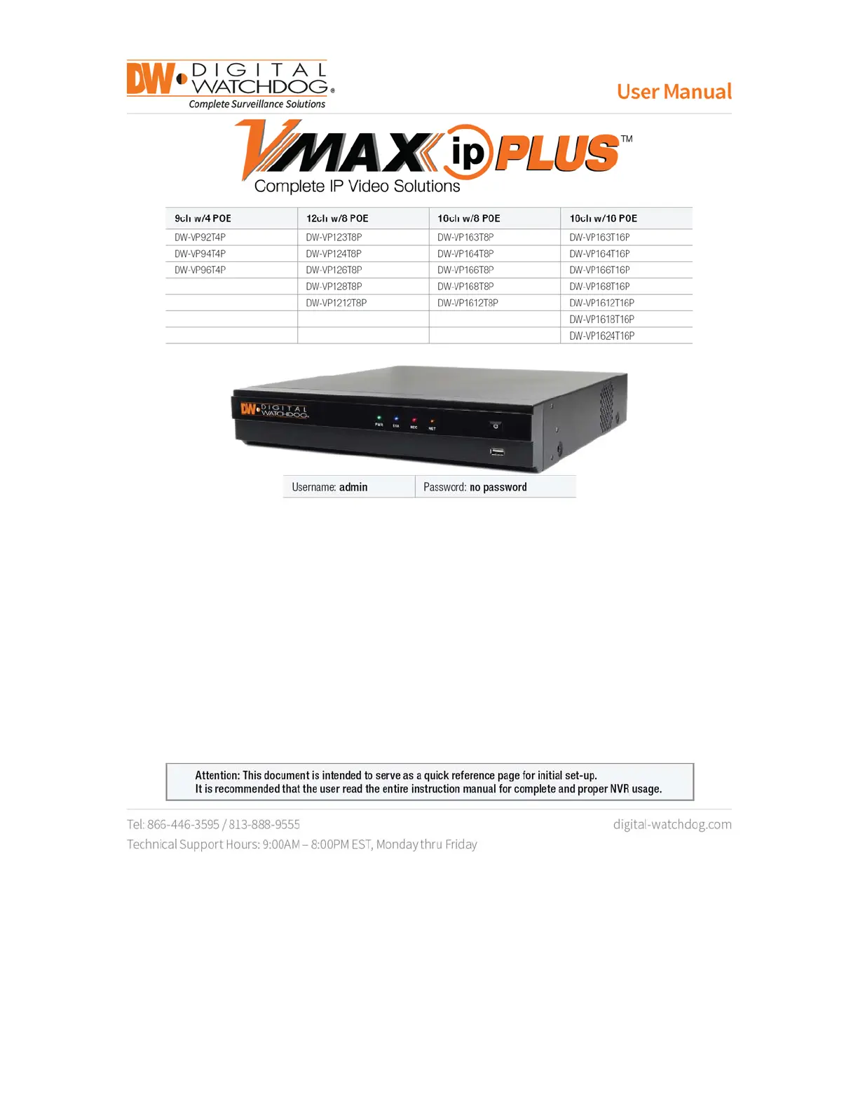 Digital Watchdog VMAX IP Plus DW-VP94T4P Bedienungsanleitung