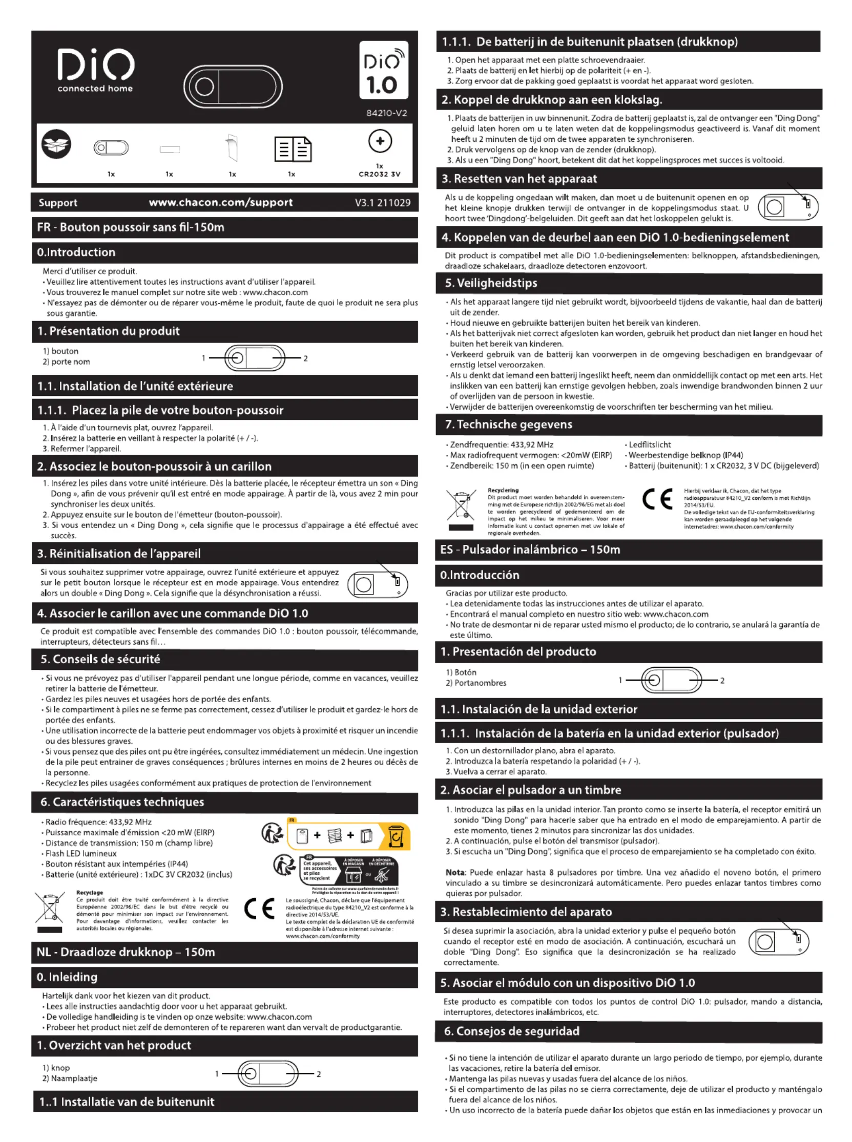Lies die bedienungsanleitung für DIO 84210 (3 Seiten) kostenlos online; sie gehört zur Kategorie Türklingel. Dieses Handbuch wurde von 47 Personen als hilfreich bewertet und erhielt im Schnitt 4.6 Sterne aus 6 Bewertungen. Hast du eine Frage zu DIO 84210 oder möchtest du andere Nutzer dieses Produkts befragen? Stelle eine Frage