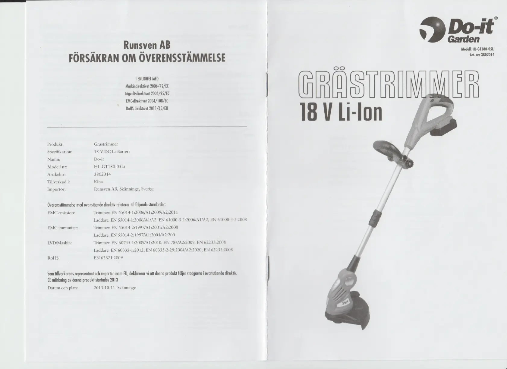 Lies die bedienungsanleitung für Do-It Garden HL-GT180-05Li (8 Seiten) kostenlos online; sie gehört zur Kategorie Rasentrimmer. Dieses Handbuch wurde von 23 Personen als hilfreich bewertet und erhielt im Schnitt 5.0 Sterne aus 12 Bewertungen. Hast du eine Frage zu Do-It Garden HL-GT180-05Li oder möchtest du andere Nutzer dieses Produkts befragen? Stelle eine Frage