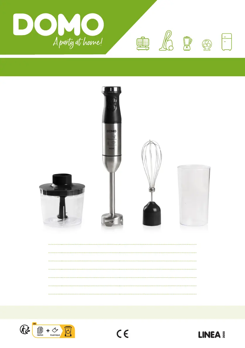 Lies die bedienungsanleitung für Domo DO1142M (1 Seiten) kostenlos online; sie gehört zur Kategorie Mischer. Dieses Handbuch wurde von 3 Personen als hilfreich bewertet und erhielt im Schnitt 4.2 Sterne aus 7 Bewertungen. Hast du eine Frage zu Domo DO1142M oder möchtest du andere Nutzer dieses Produkts befragen? Stelle eine Frage