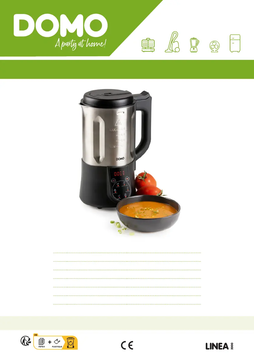 Lies die bedienungsanleitung für Domo DO753BL (80 Seiten) kostenlos online; sie gehört zur Kategorie Suppenmacher. Dieses Handbuch wurde von 12 Personen als hilfreich bewertet und erhielt im Schnitt 5.0 Sterne aus 6.5 Bewertungen. Hast du eine Frage zu Domo DO753BL oder möchtest du andere Nutzer dieses Produkts befragen? Stelle eine Frage
