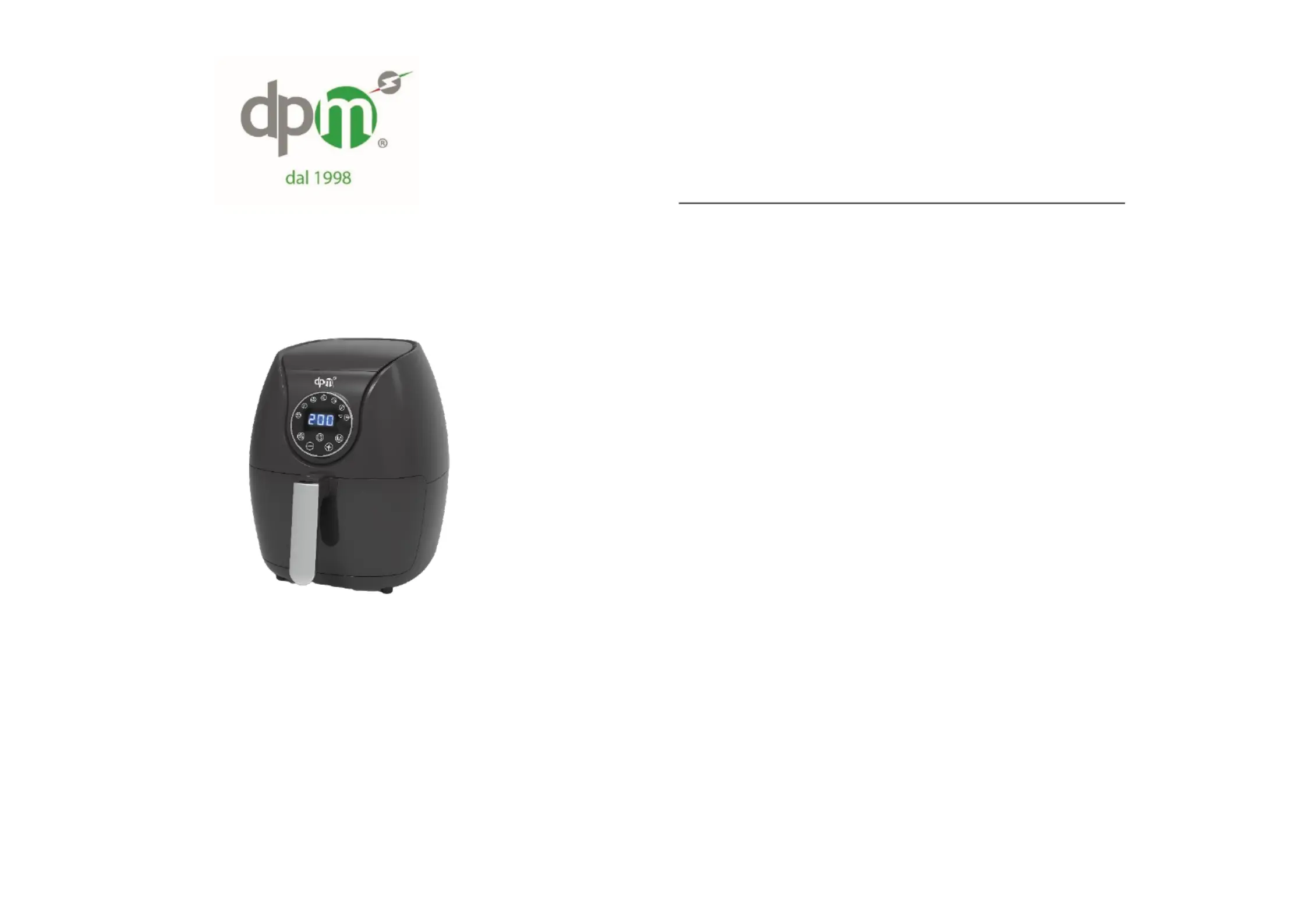 Lies die bedienungsanleitung für DPM Charlotte (16 Seiten) kostenlos online; sie gehört zur Kategorie Fritteuse. Dieses Handbuch wurde von 55 Personen als hilfreich bewertet und erhielt im Schnitt 4.8 Sterne aus 28 Bewertungen. Hast du eine Frage zu DPM Charlotte oder möchtest du andere Nutzer dieses Produkts befragen? Stelle eine Frage