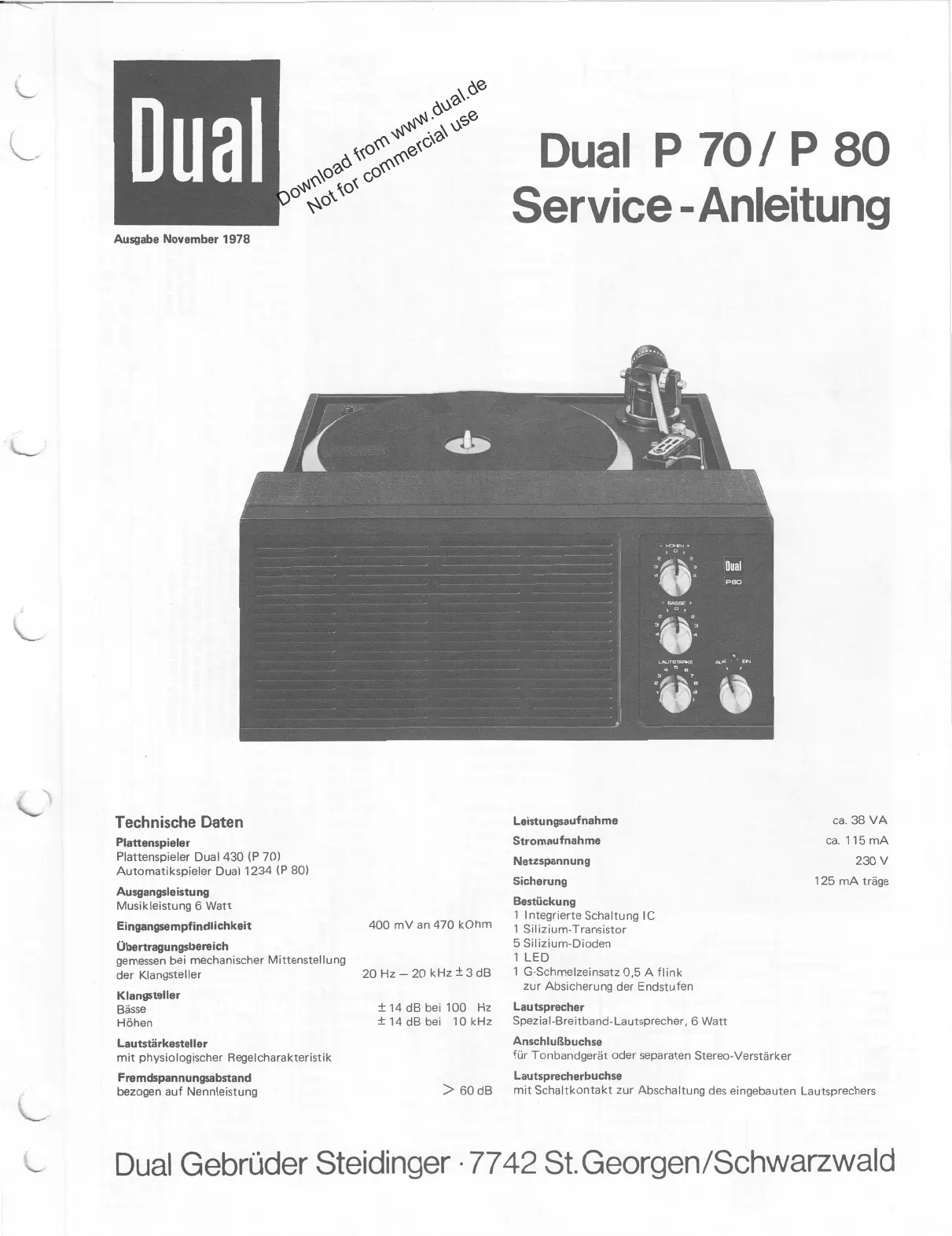 Lies die bedienungsanleitung für Dual P80 (6 Seiten) kostenlos online; sie gehört zur Kategorie Nicht kategorisiert. Dieses Handbuch wurde von 18 Personen als hilfreich bewertet und erhielt im Schnitt 4.7 Sterne aus 9.5 Bewertungen. Hast du eine Frage zu Dual P80 oder möchtest du andere Nutzer dieses Produkts befragen? Stelle eine Frage