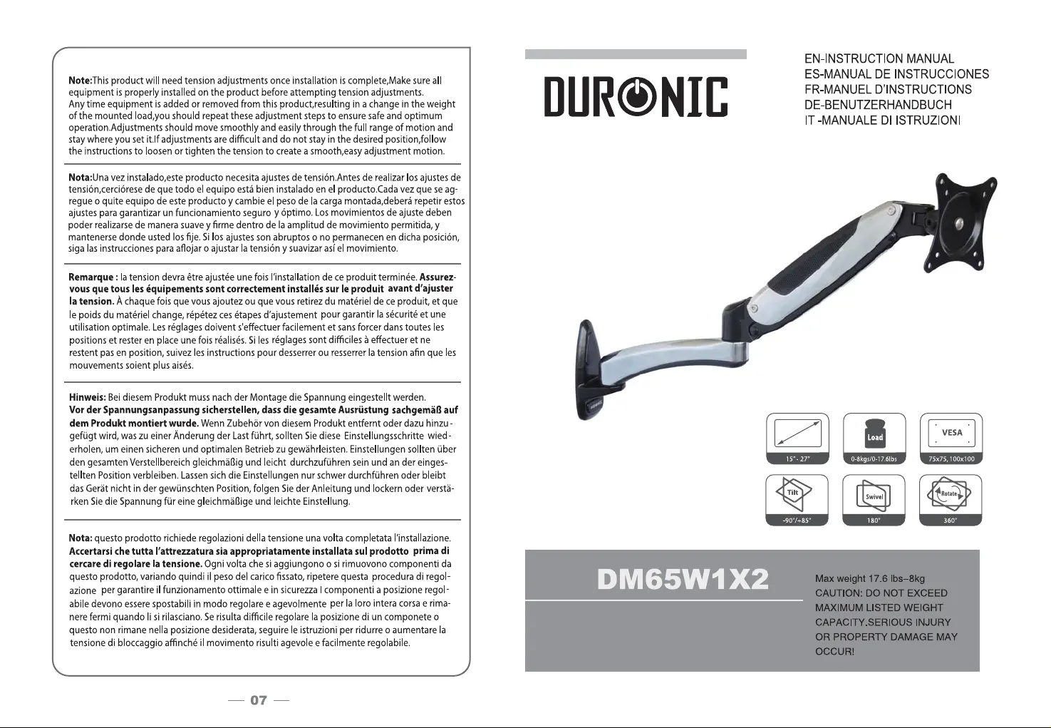 Duronic DM65W1X2 Bedienungsanleitung