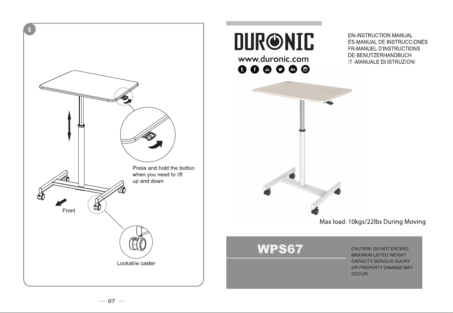 Duronic WPS67 Bedienungsanleitung