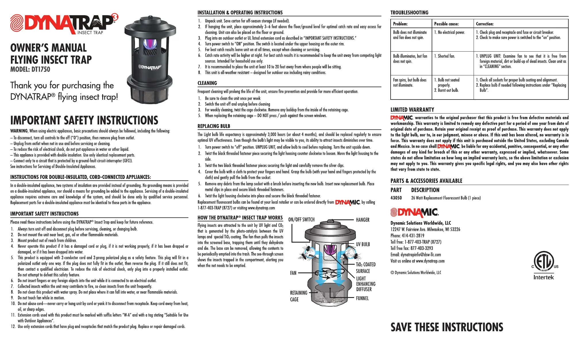 Dynatrap DT1750 Bedienungsanleitung
