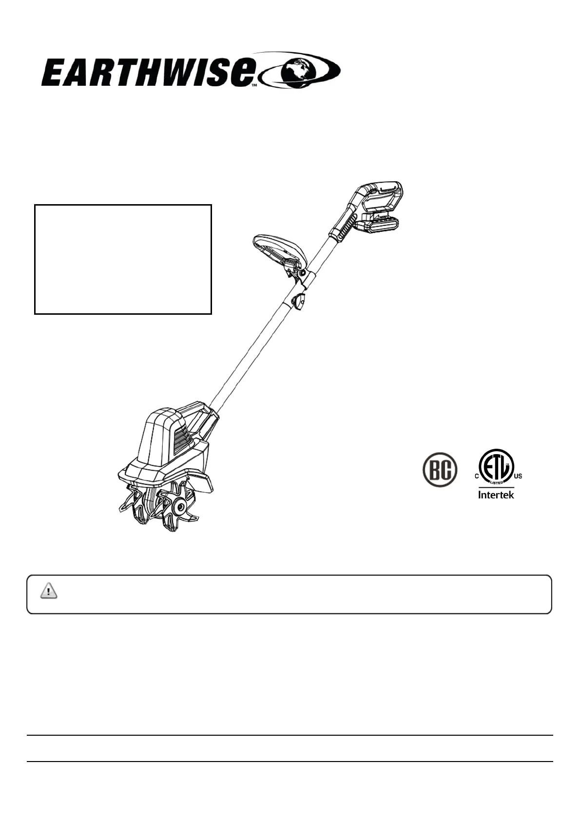 Your cordless tiller has been engineered and manufactured to our high standard for dependability, ease of operation,