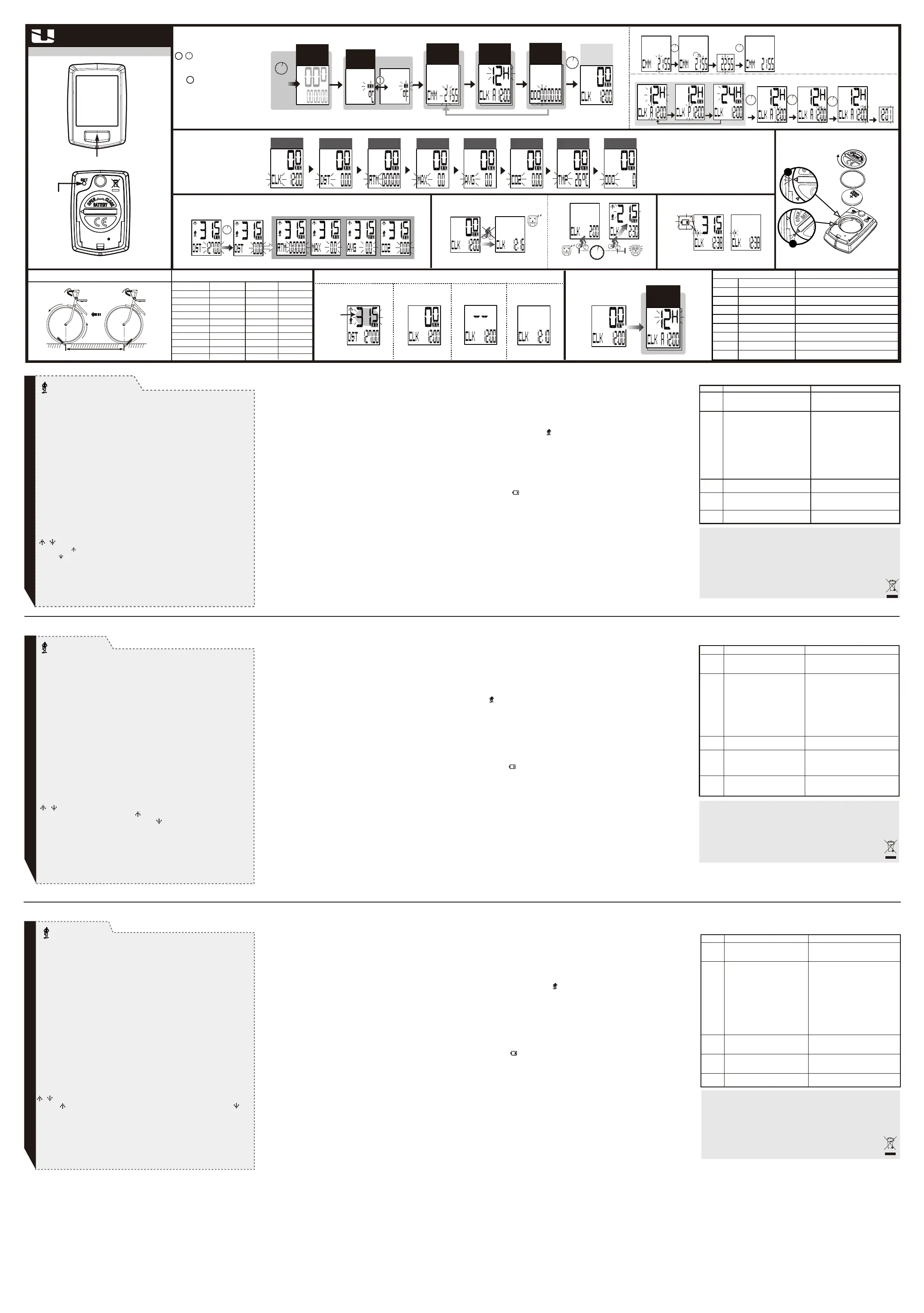 1.Press this button to get in the setting screens when you want to reset the bike computer, or the current time