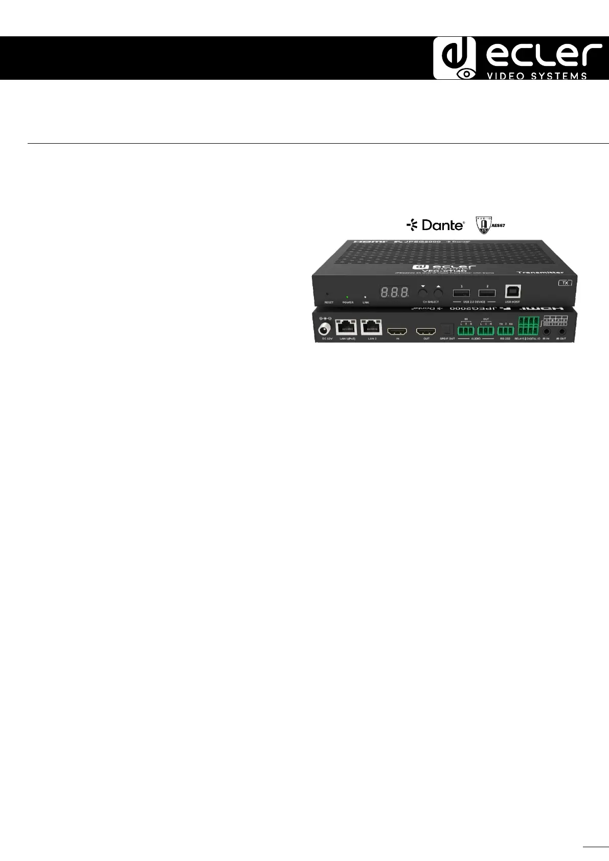 JPEG2000 4K Over IP Video Transmitter with Dante