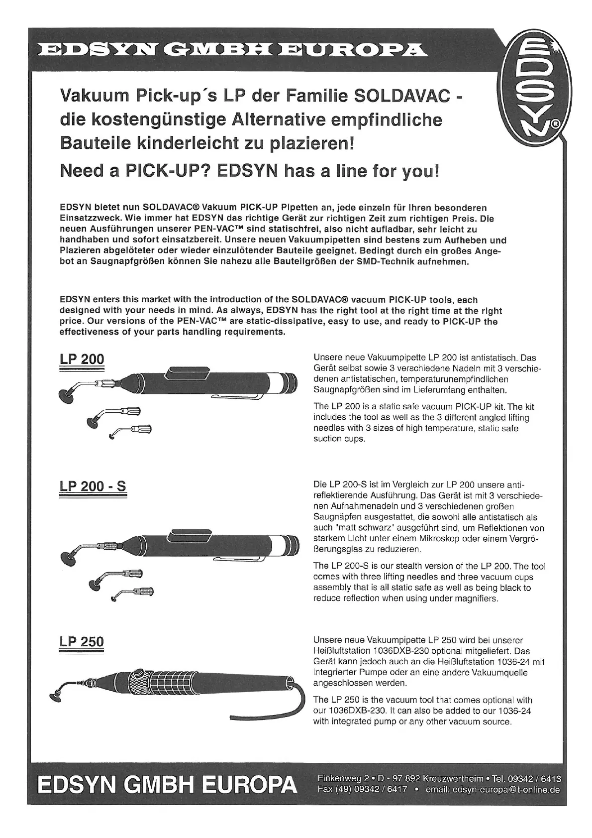 Lies die bedienungsanleitung für Edsyn LP 200 (2 Seiten) kostenlos online; sie gehört zur Kategorie Lötmaschine. Dieses Handbuch wurde von 46 Personen als hilfreich bewertet und erhielt im Schnitt 4.5 Sterne aus 23.5 Bewertungen. Hast du eine Frage zu Edsyn LP 200 oder möchtest du andere Nutzer dieses Produkts befragen? Stelle eine Frage