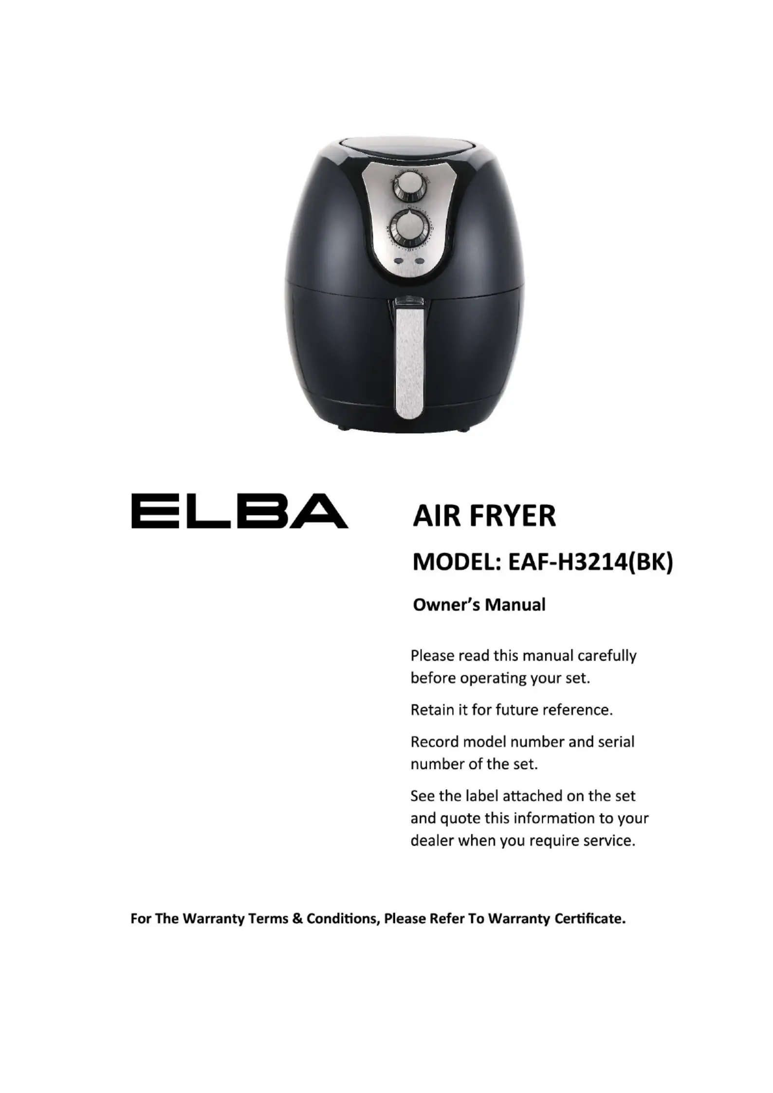 Lies die bedienungsanleitung für Elba EAF-H3214(BK) (8 Seiten) kostenlos online; sie gehört zur Kategorie Fritteuse. Dieses Handbuch wurde von 31 Personen als hilfreich bewertet und erhielt im Schnitt 5.0 Sterne aus 5 Bewertungen. Hast du eine Frage zu Elba EAF-H3214(BK) oder möchtest du andere Nutzer dieses Produkts befragen? Stelle eine Frage
