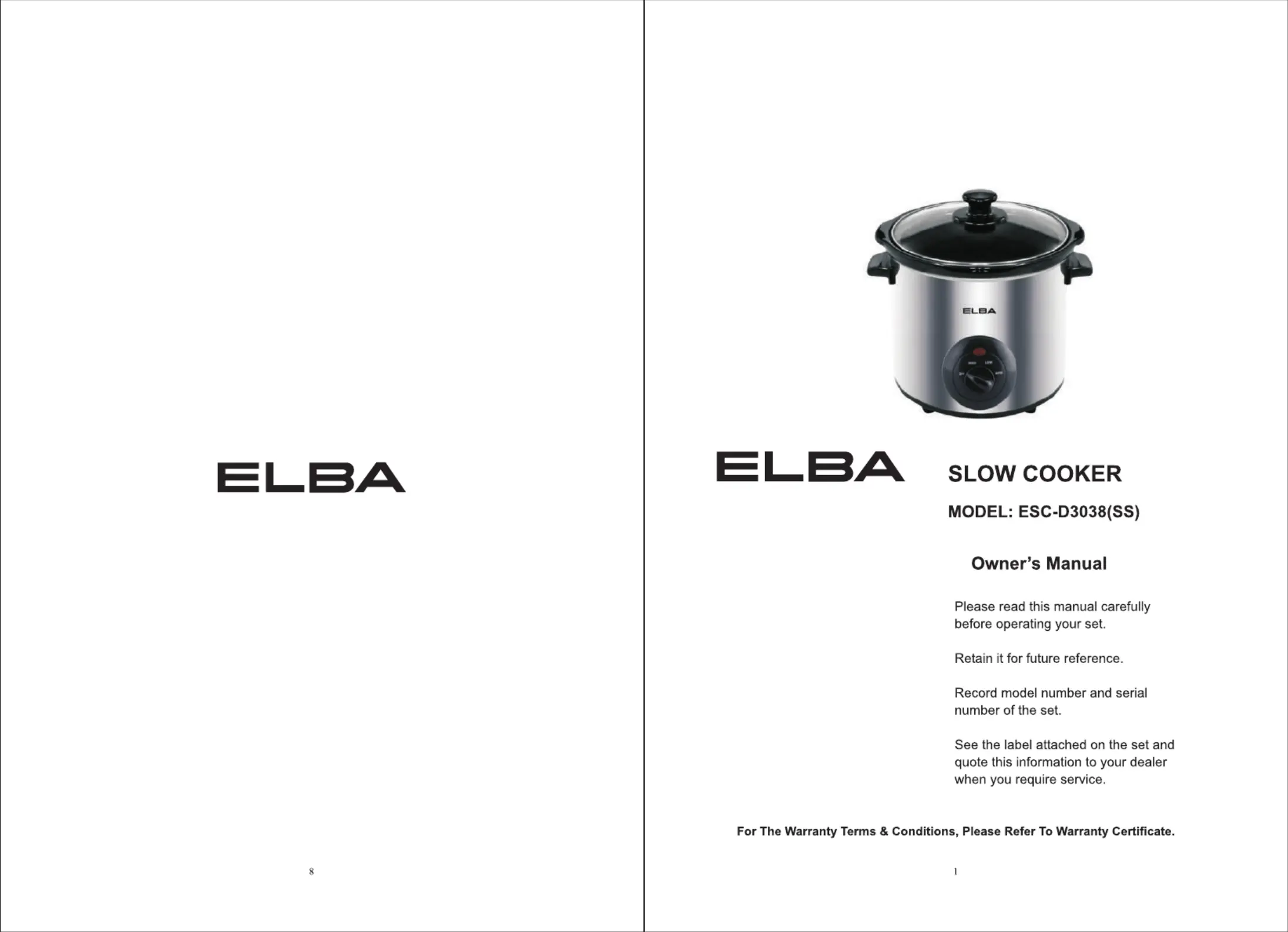 Elba ESC-D3038(SS) Bedienungsanleitung