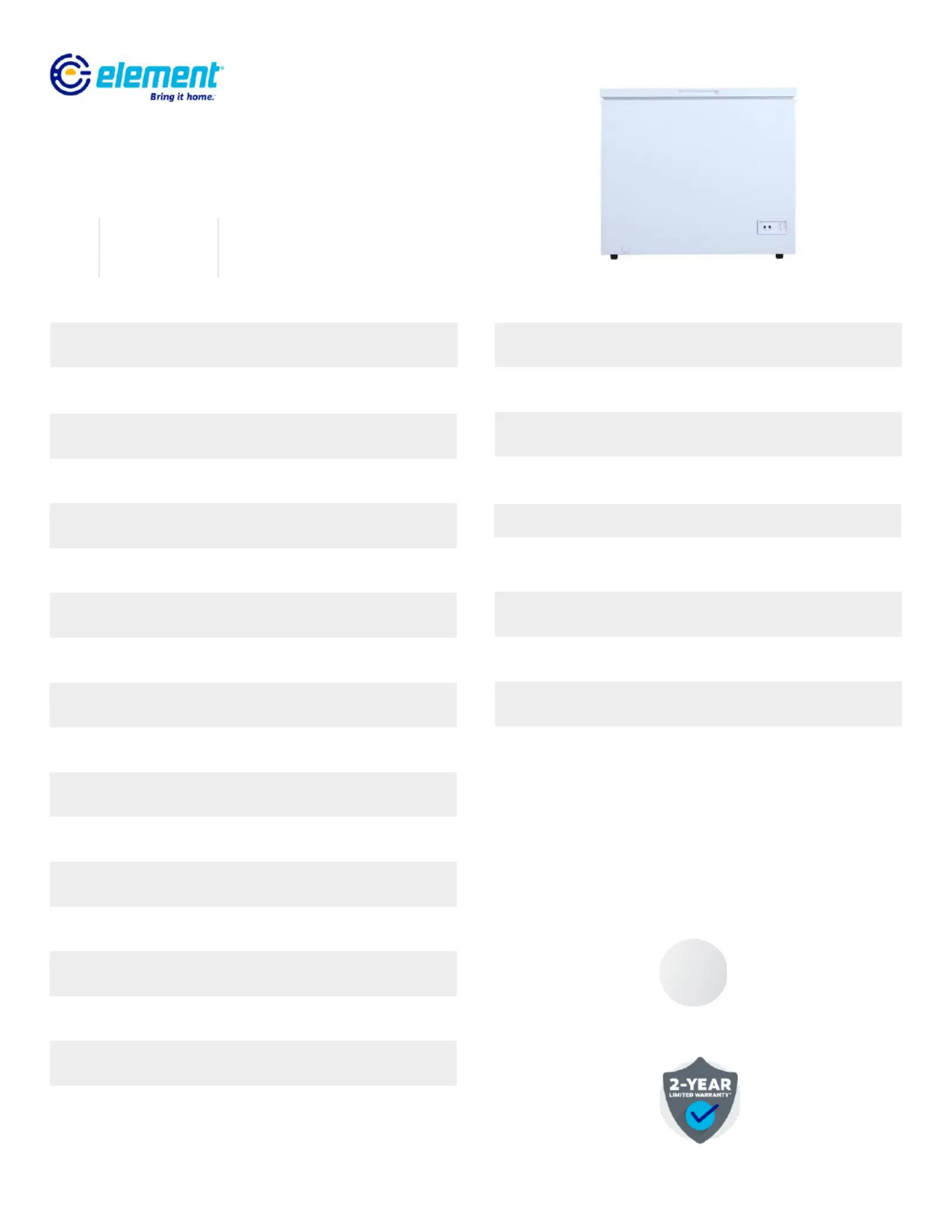Lies die bedienungsanleitung für Element ECF70MD2EW (5 Seiten) kostenlos online; sie gehört zur Kategorie Gefrierschrank. Dieses Handbuch wurde von 2 Personen als hilfreich bewertet und erhielt im Schnitt 4.6 Sterne aus 7 Bewertungen. Hast du eine Frage zu Element ECF70MD2EW oder möchtest du andere Nutzer dieses Produkts befragen? Stelle eine Frage