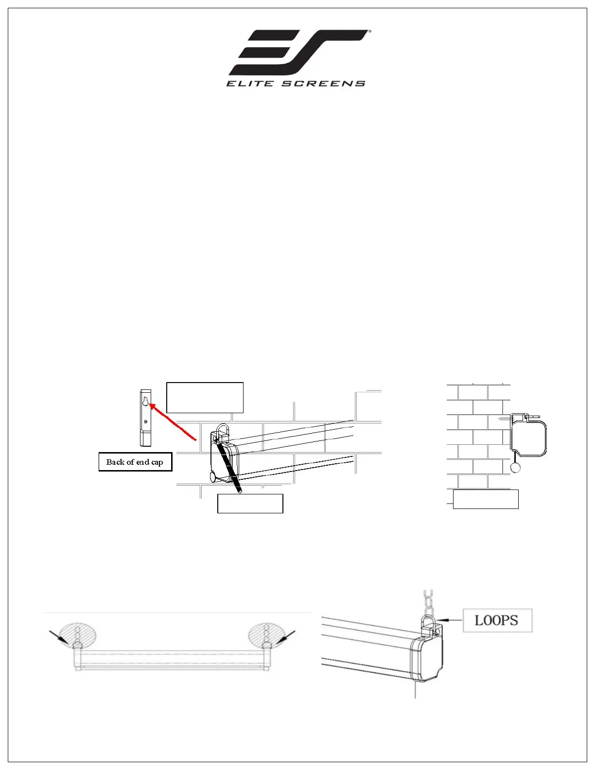 Note: Do not remove the end caps to mount the screen to the wall.